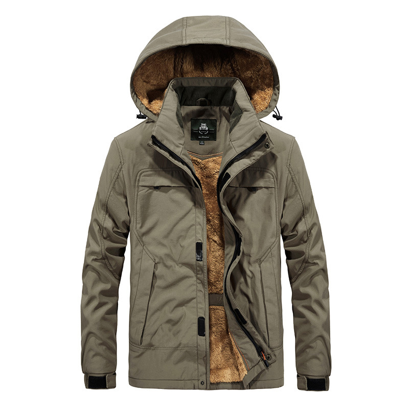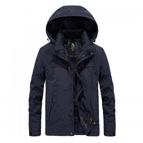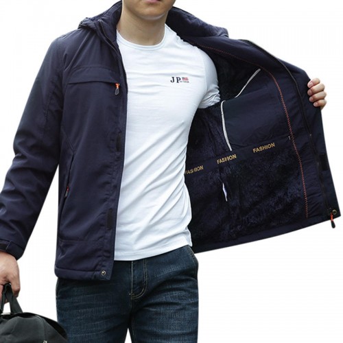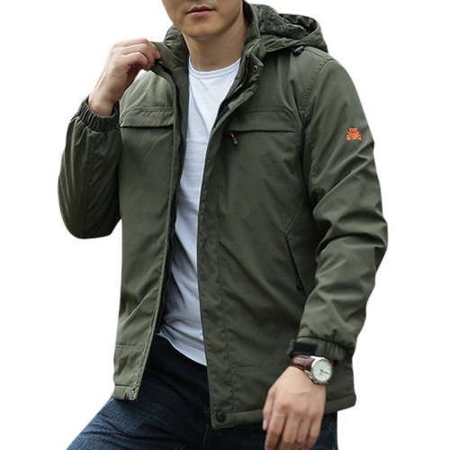 Description: Item Type: Coats Sleeve Length: Long Sleeve Gender: Men Clothing Length: Regular Style: Casual, Outdoor Thickness: Thick Material: Polyester Fit Type: Fit Lining Material: Polyester Pattern Type: Solid Color Collar: Stand Collar Season: Spring, Autumn, Winter Hooded: Yes Color: Black, Khaki, Army Green, Dark Blue Closure Type: Zipper Occasion: Leisure, Outdoor