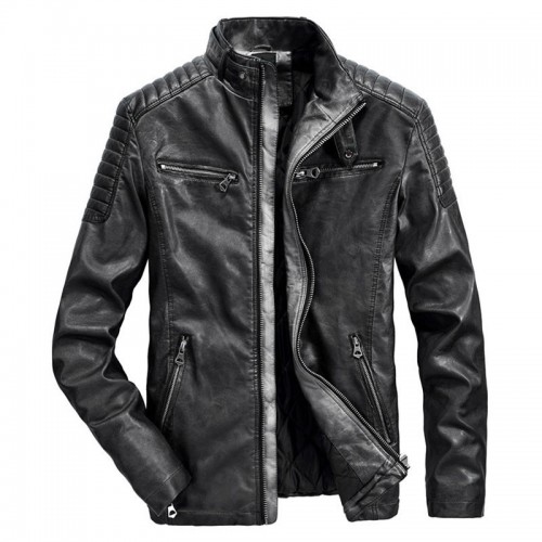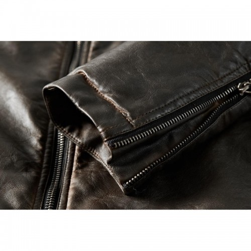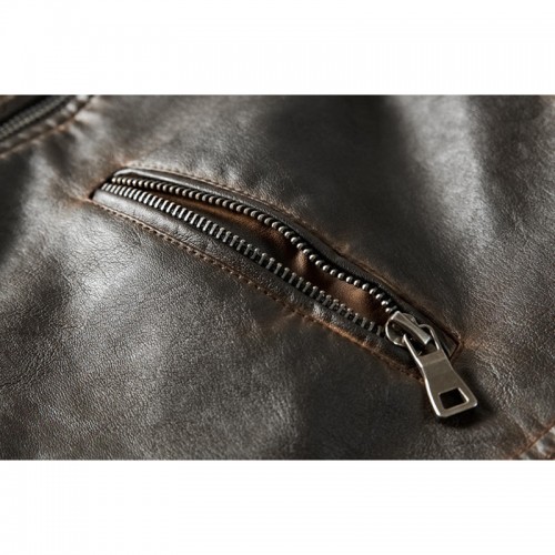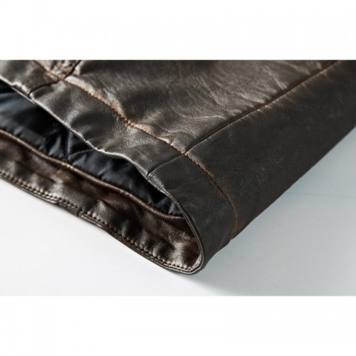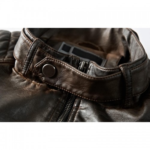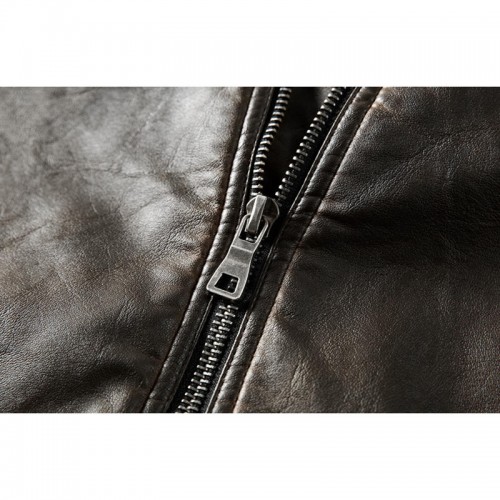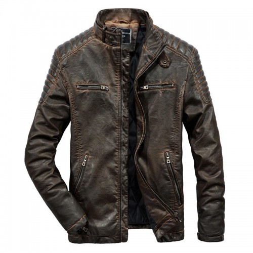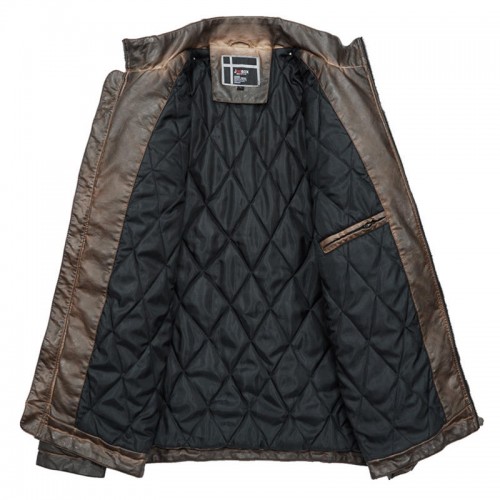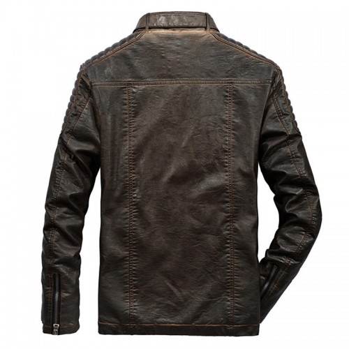 Mens Vintage Faux Leather Motorcycle Jacket Thick Warm PU Biker Jacket