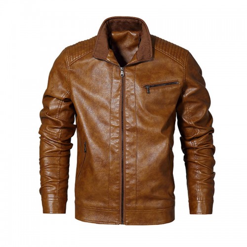 Mens PU Faux Leather Motorcycle Biker Jacket