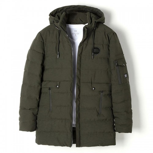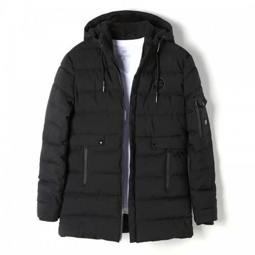 Mens Mid Long Fashion Casual Winter Thick Cotton Padded Hooded Jacket