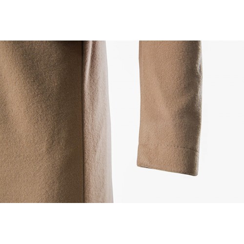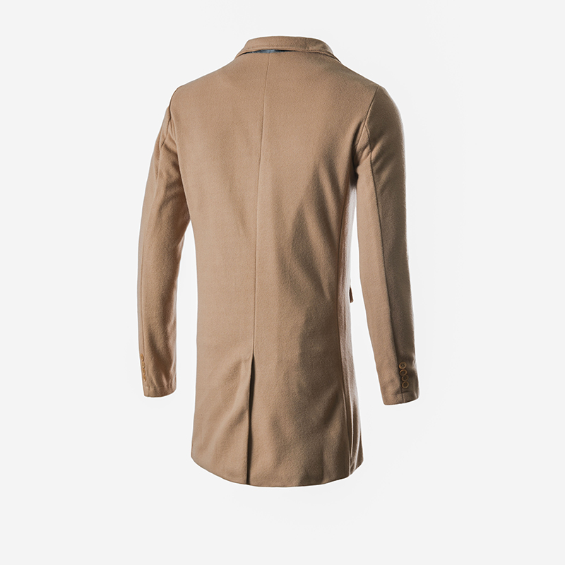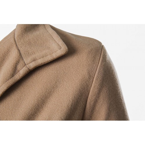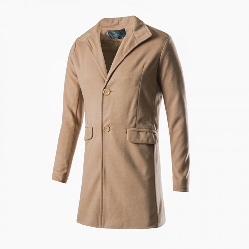 Mens Winter Khaki Mid Long Woolen Overcoat Trench Coat