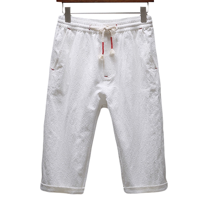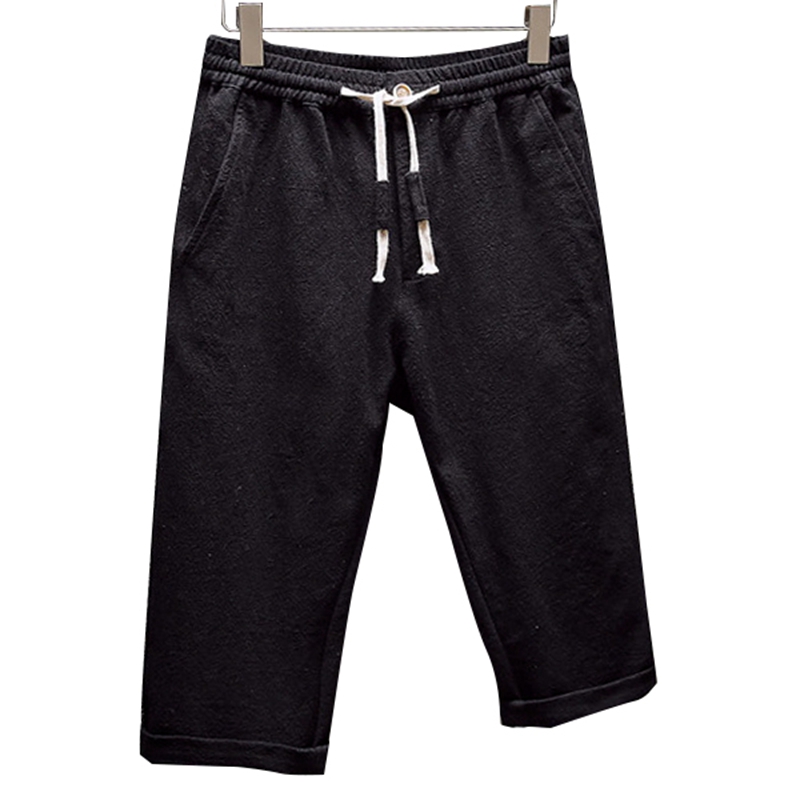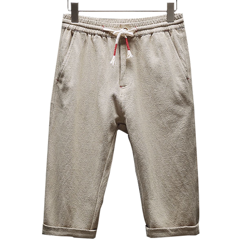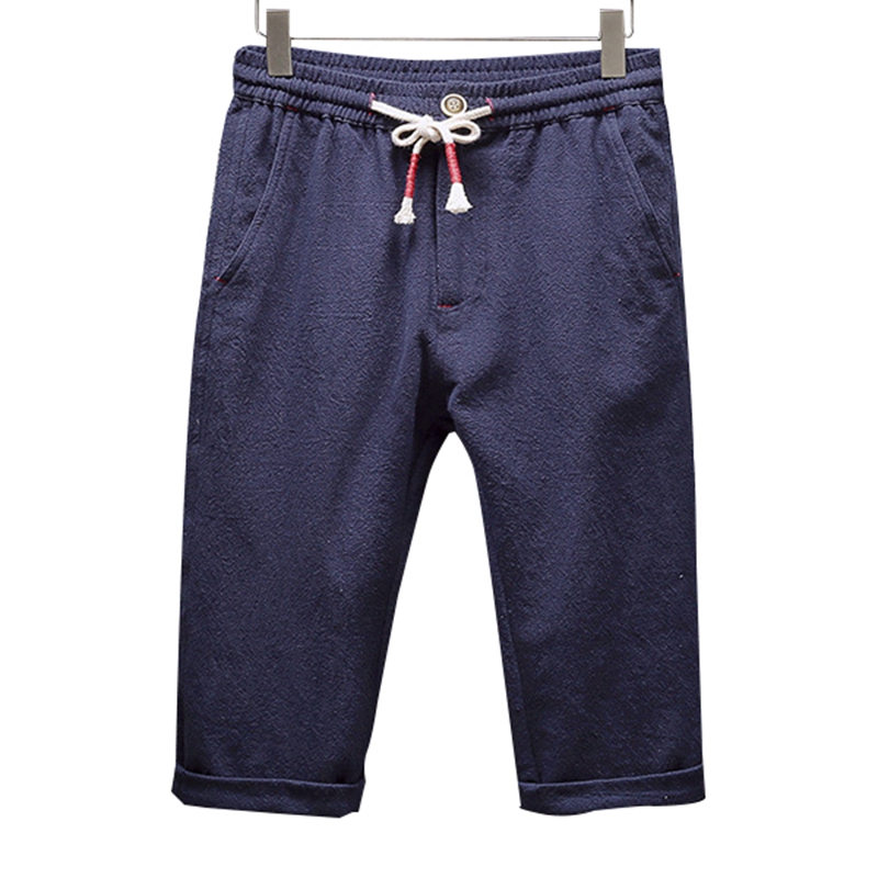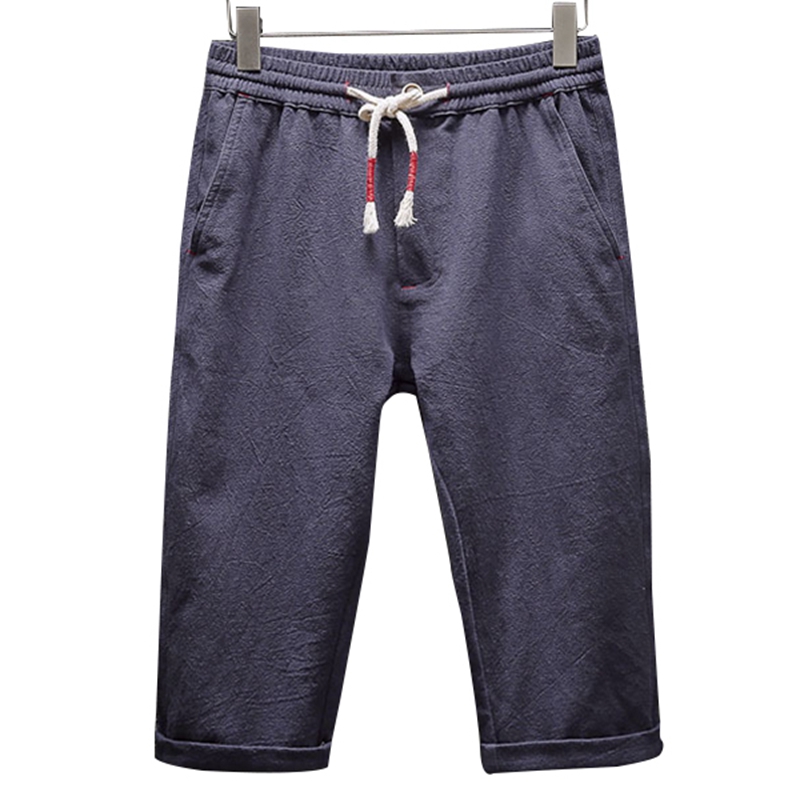 Mens Linen Cotton Antibacterial Breathable Calf-Length Pants Loose Casual Homewear Shorts