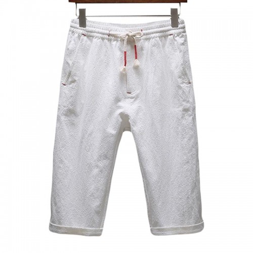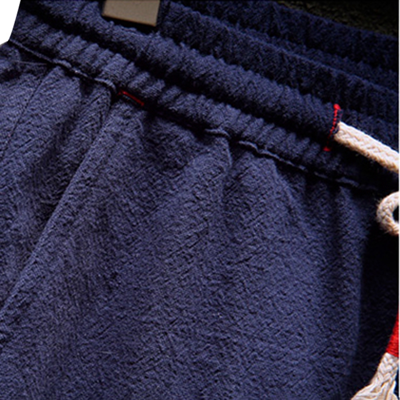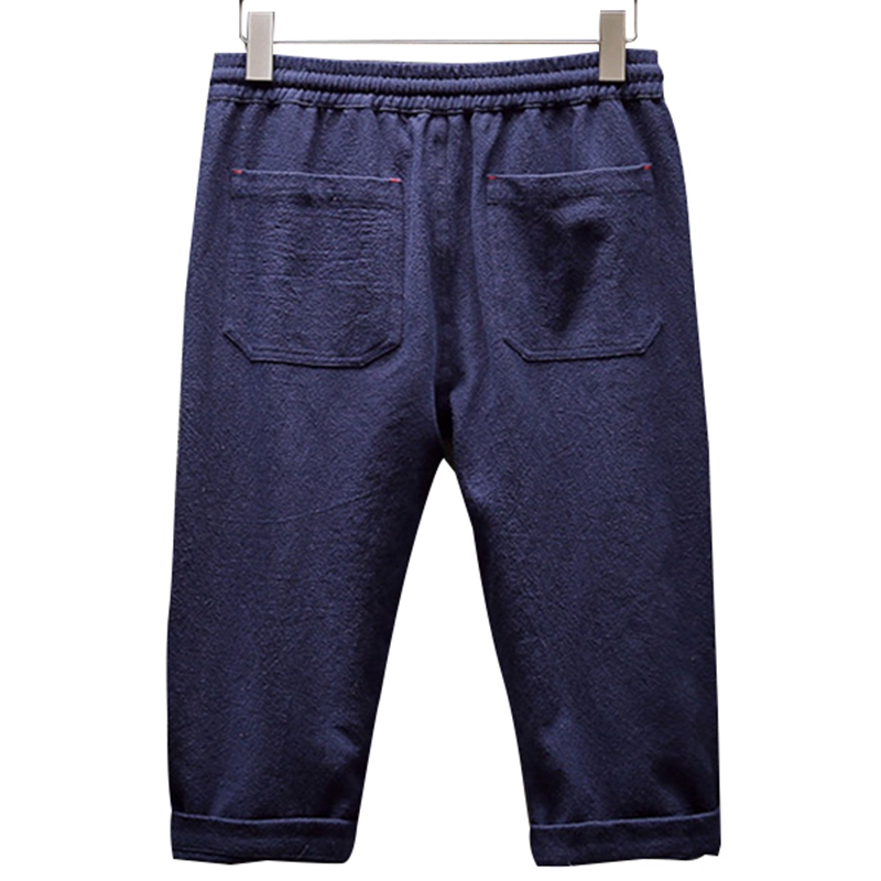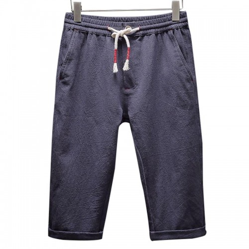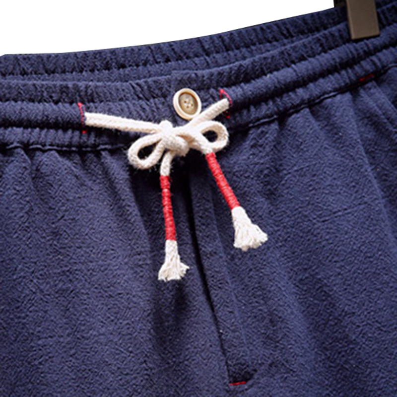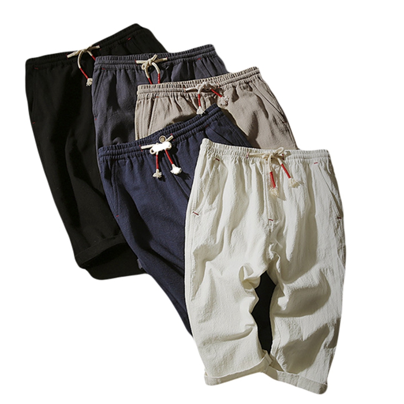Mens Linen Cotton Antibacterial Breathable Calf-Length Pants Loose Casual Homewear Shorts