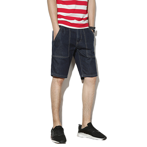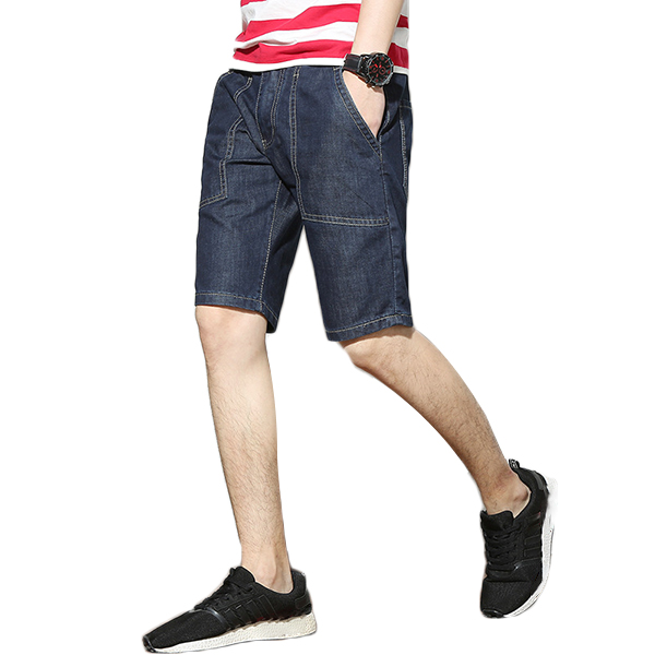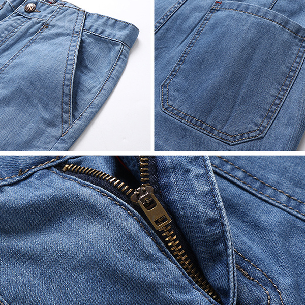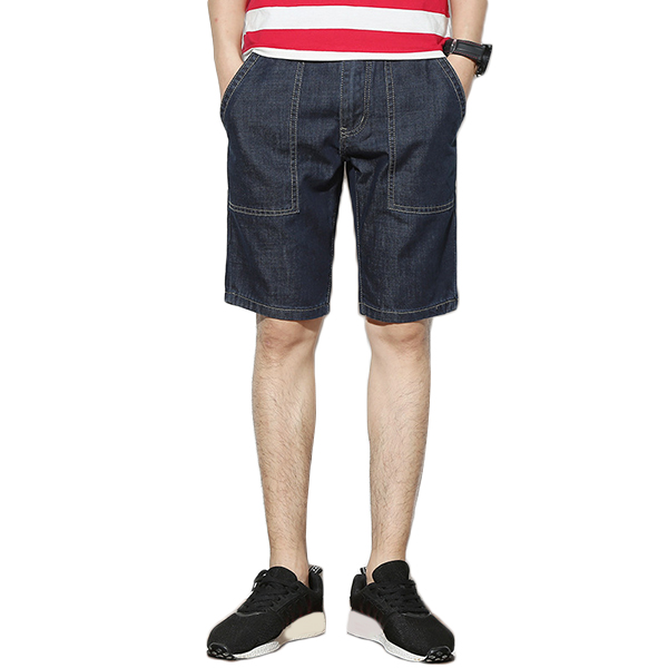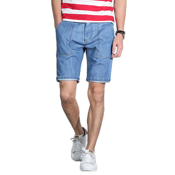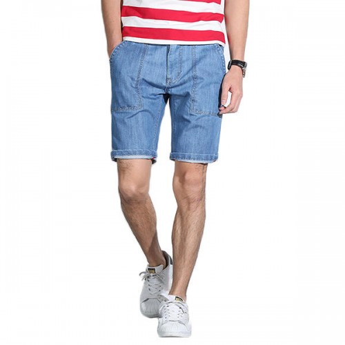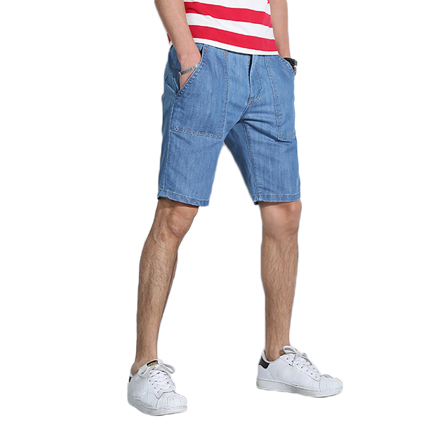 Mens Mid Rise Straight Legs Denim Shorts Big Pockets Summer Thin Jeans