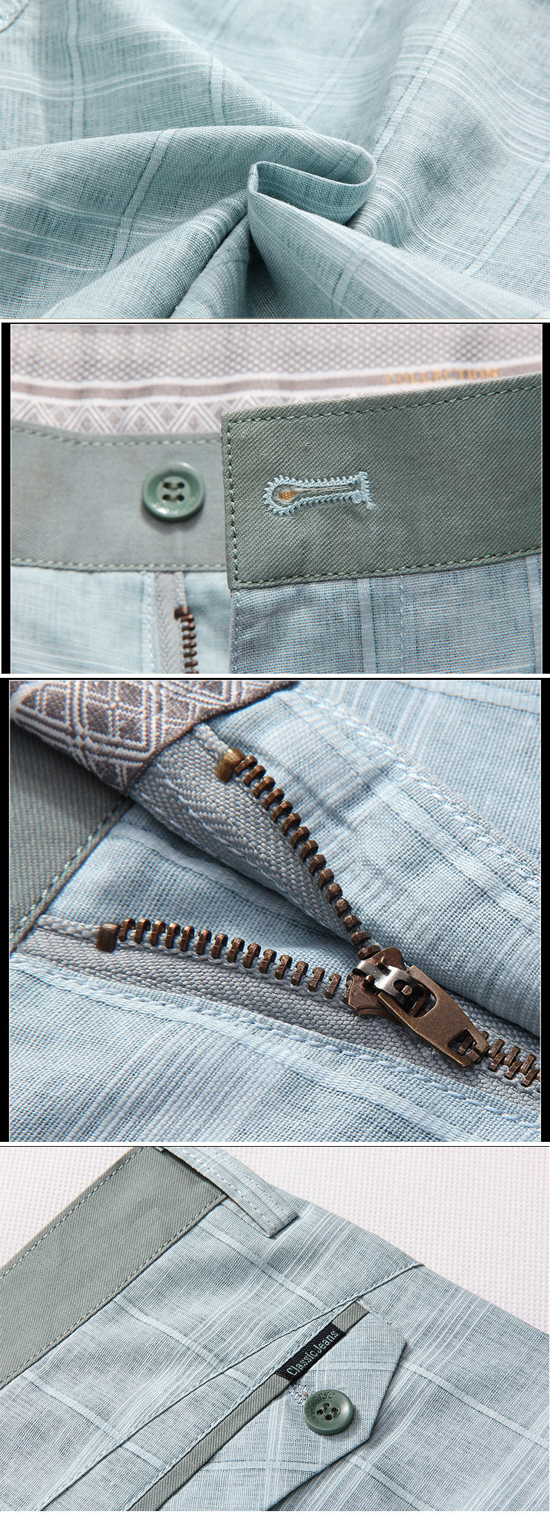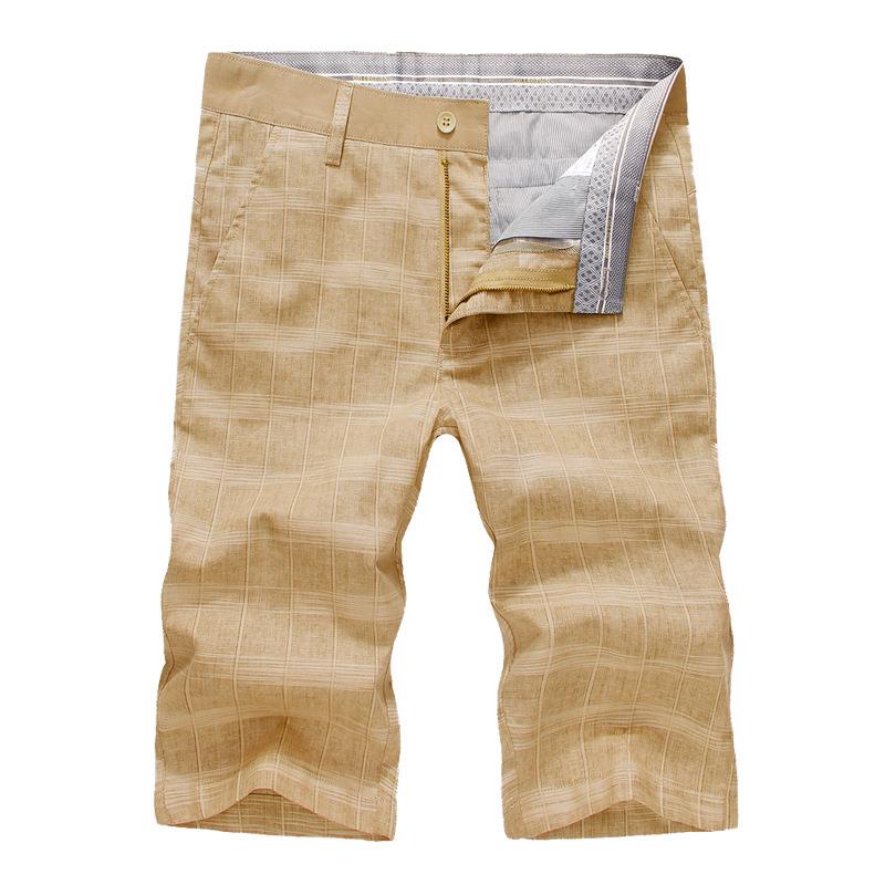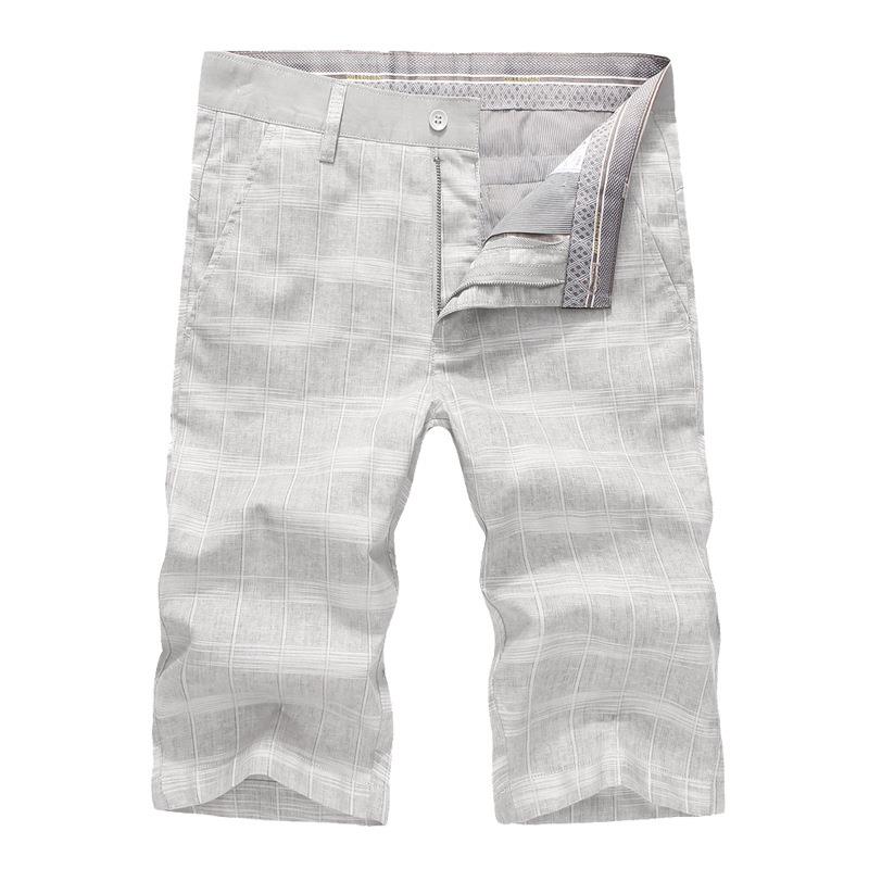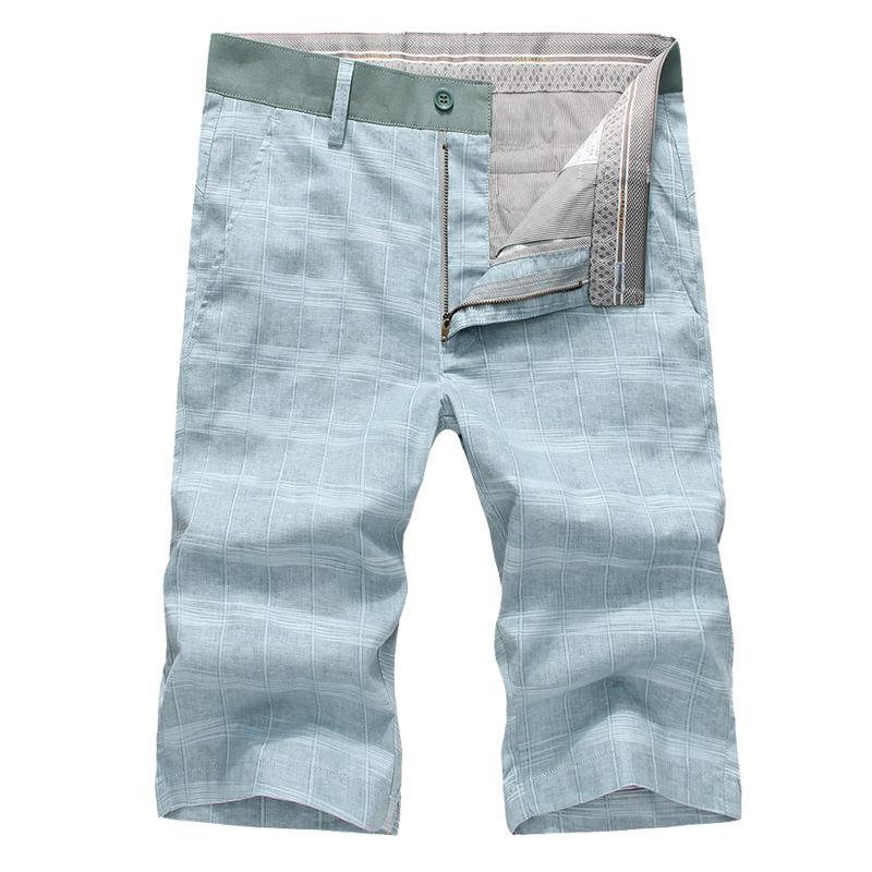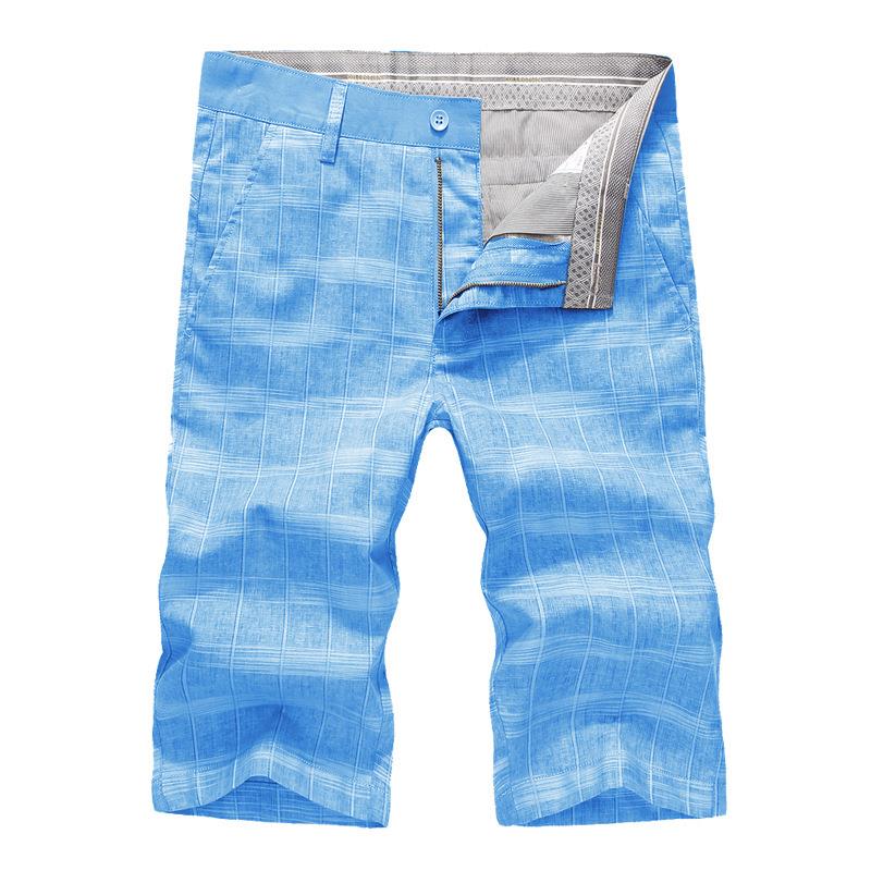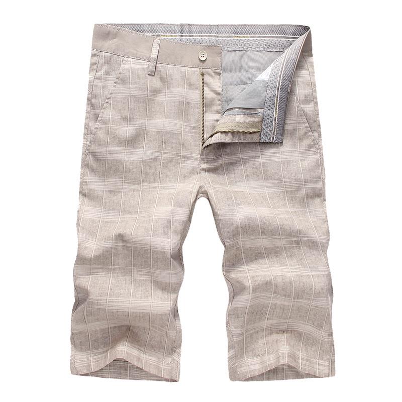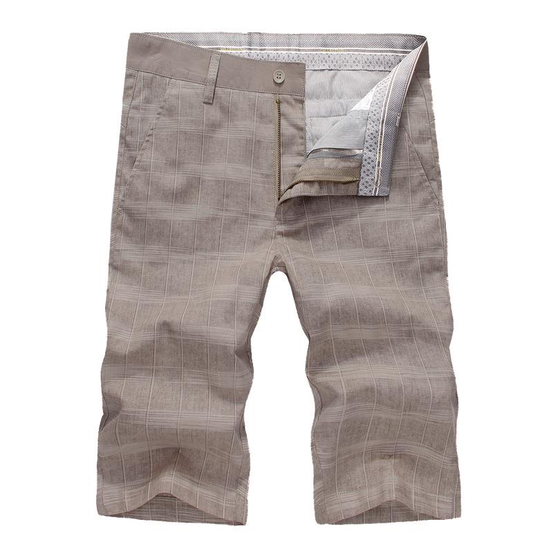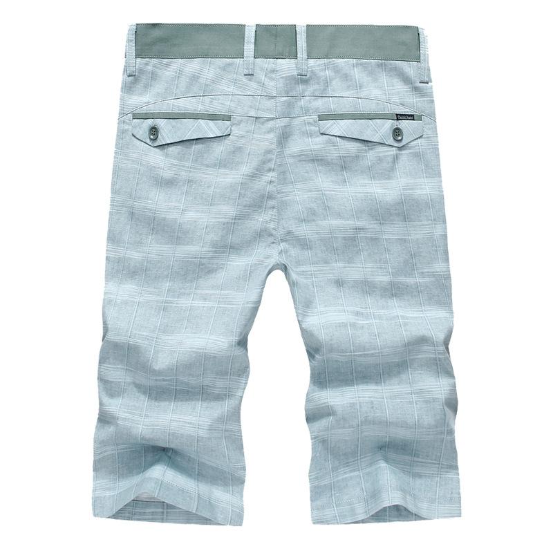 Men's Breathable Solf Cotton Linen Plaid Mid-Waist Slim Casual Shorts Pants