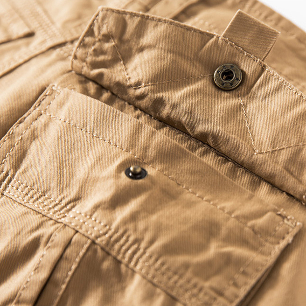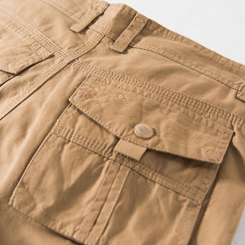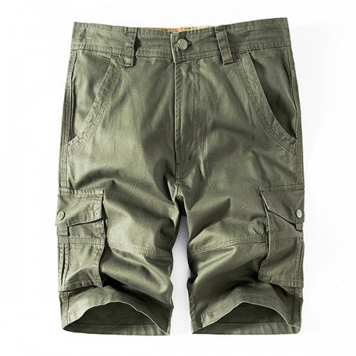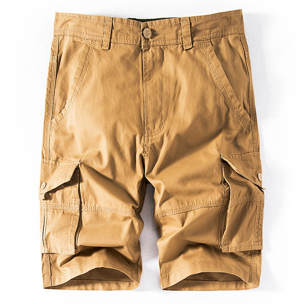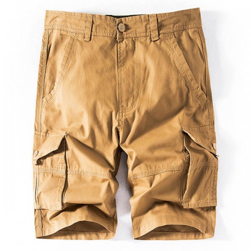 Men's Summer Leisure Loose Cotton Cargo Shorts Outdoor Big Pocket Solid Color Shorts