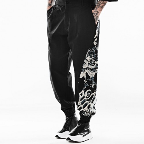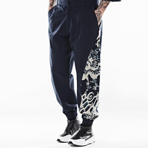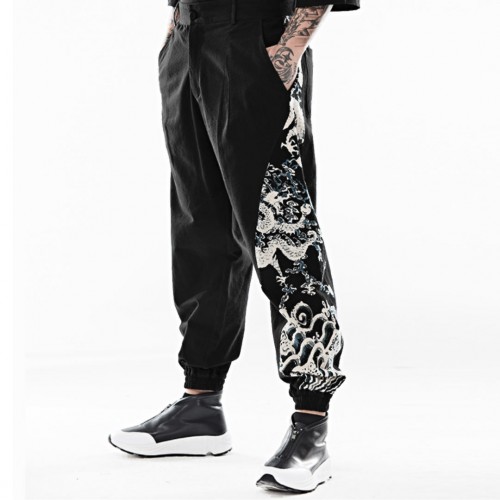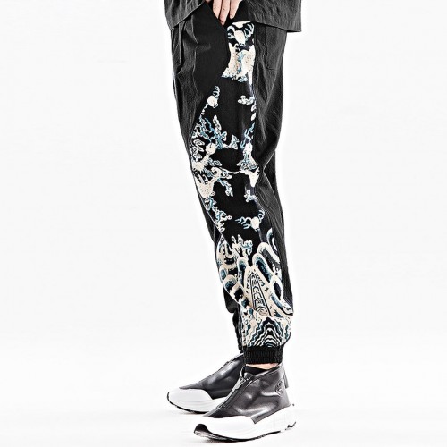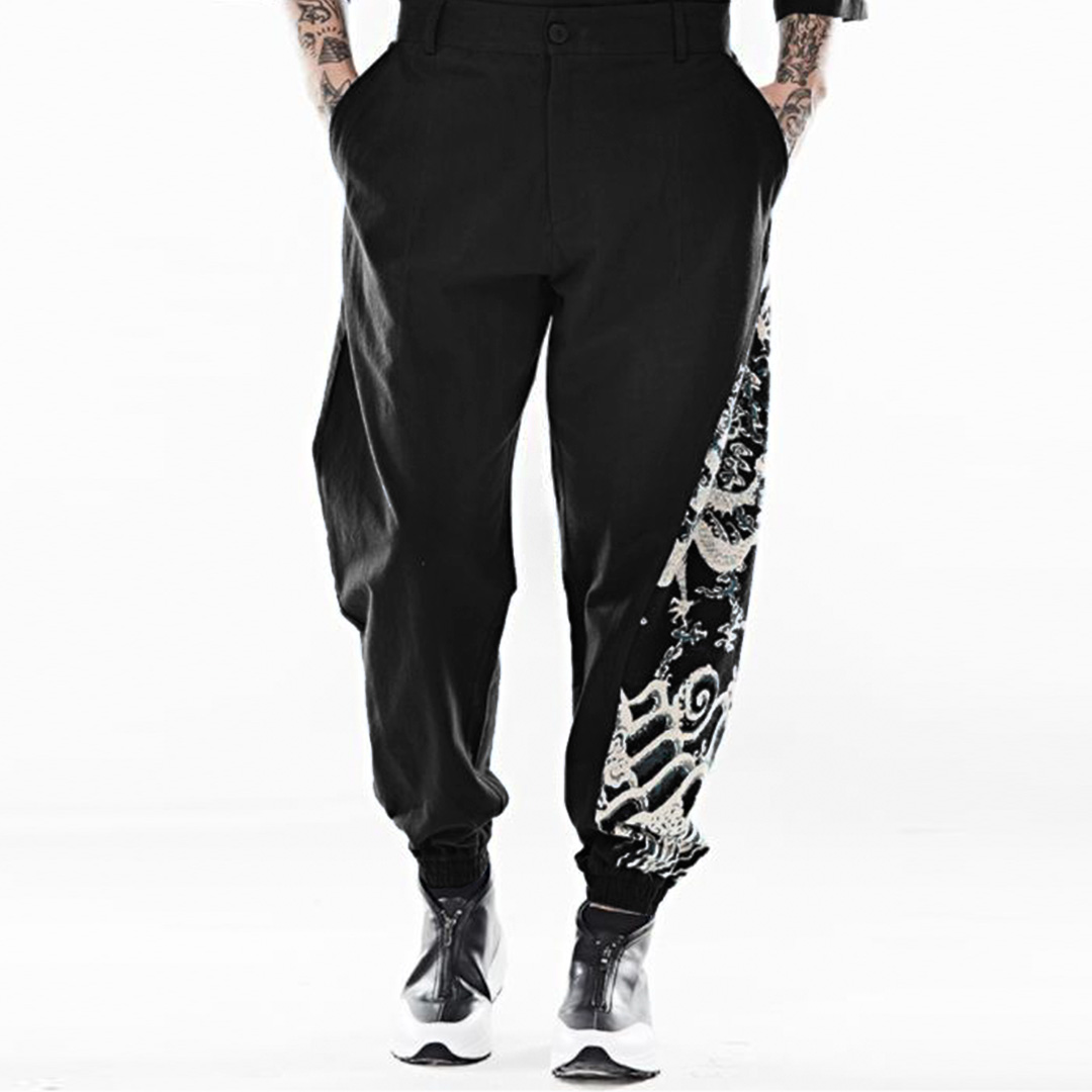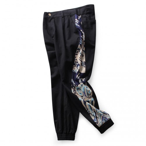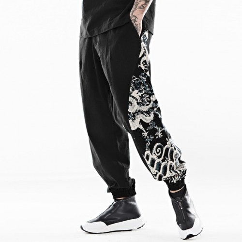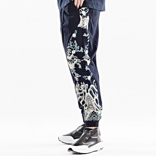 Mens Chinese Style Totem Printed Cotton Plus Size Vintage Trendy Harem Pants