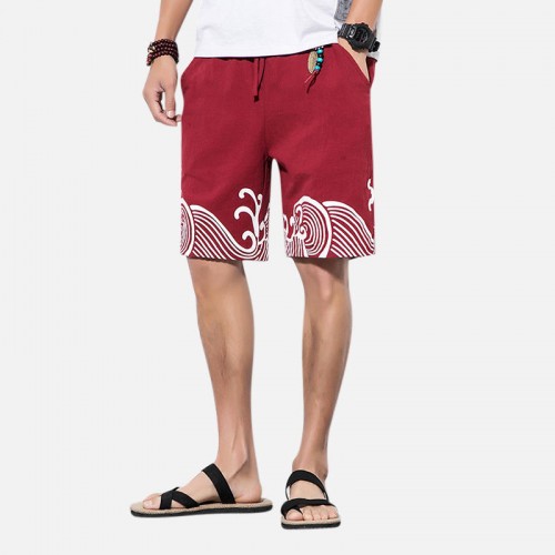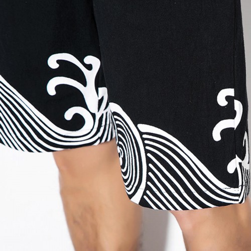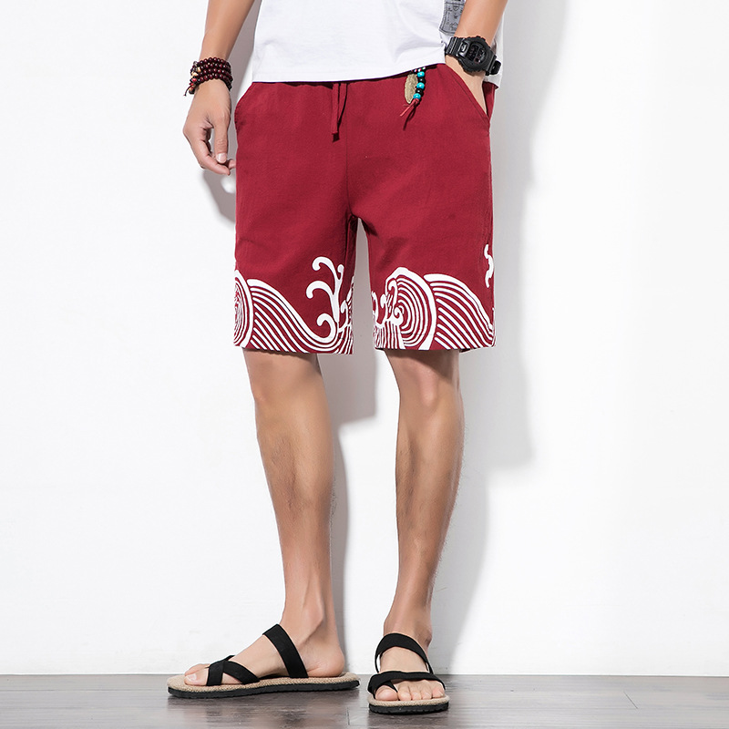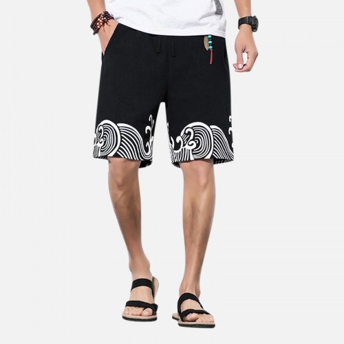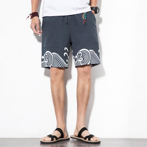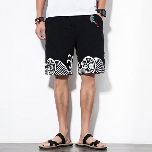 Mens Chinese Style Linen Shorts Summer Casual Board Shorts