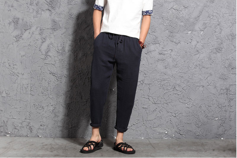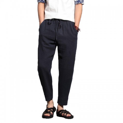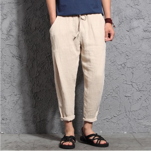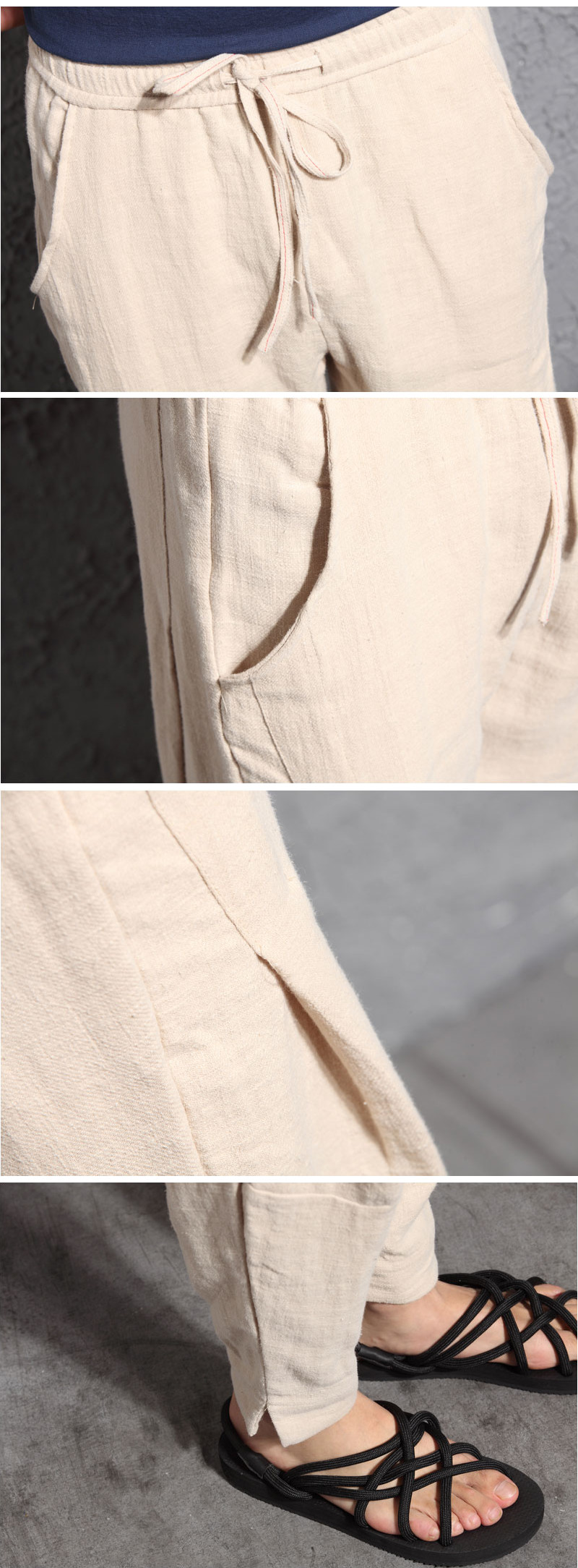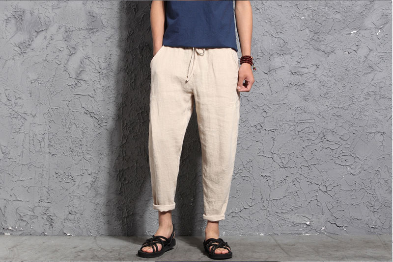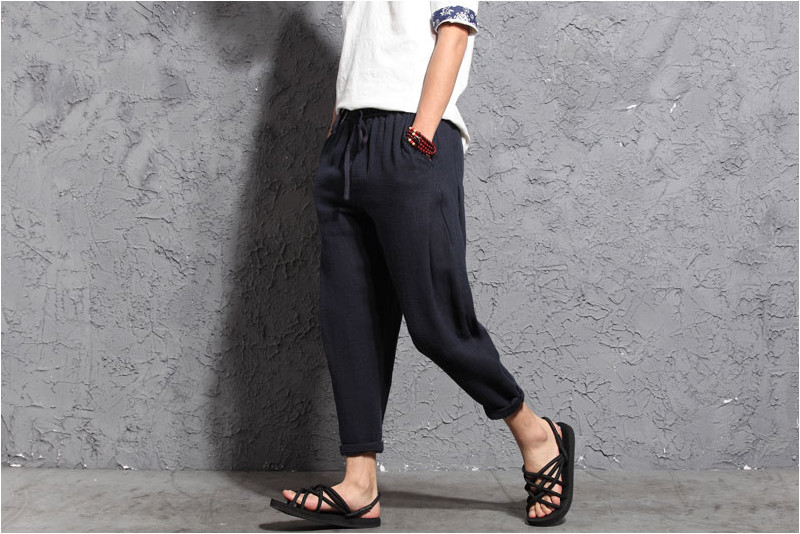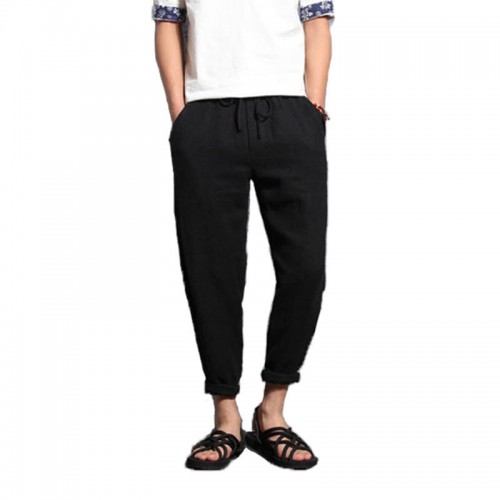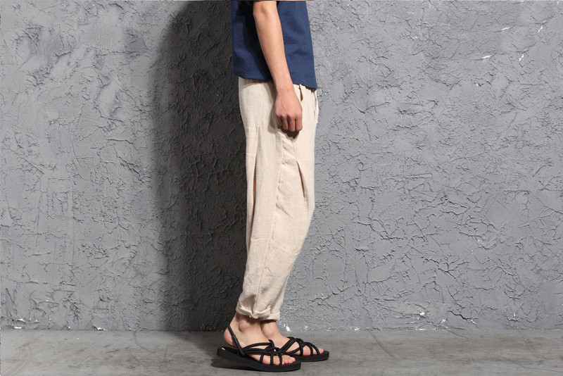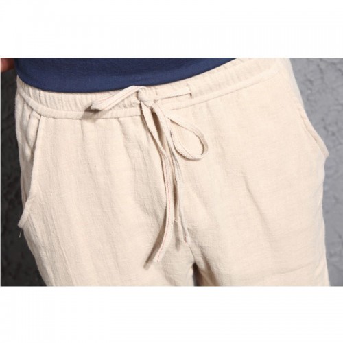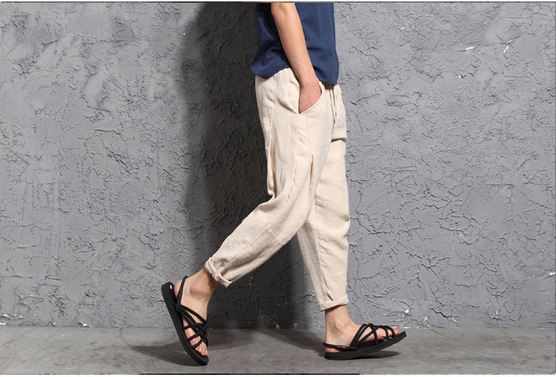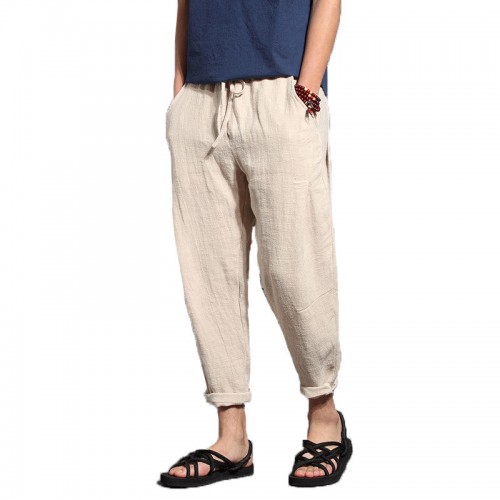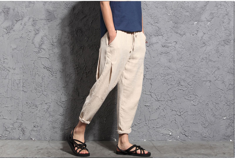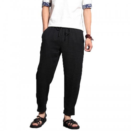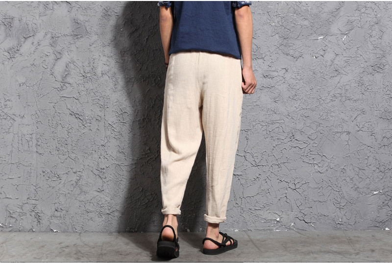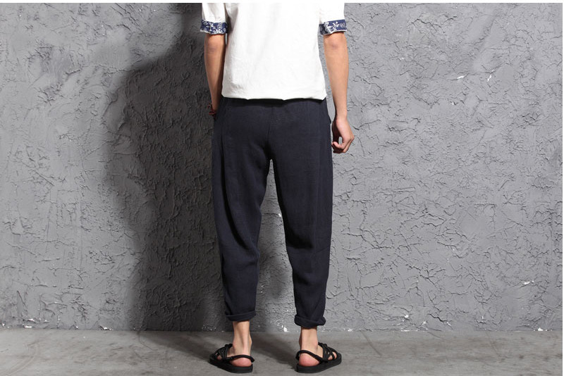 Chinese Style Men's Linen Cotton Casual Loose Pants Men's Wide Leg Harlan Pants