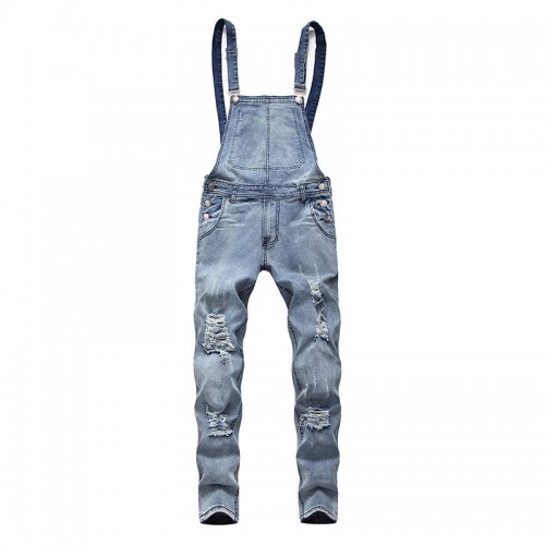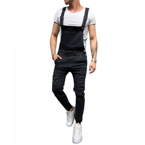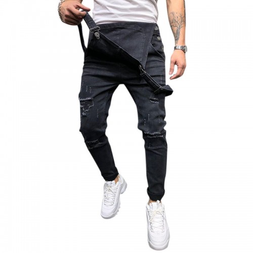 Denim Overalls Suspenders Ripped Jeans for Men