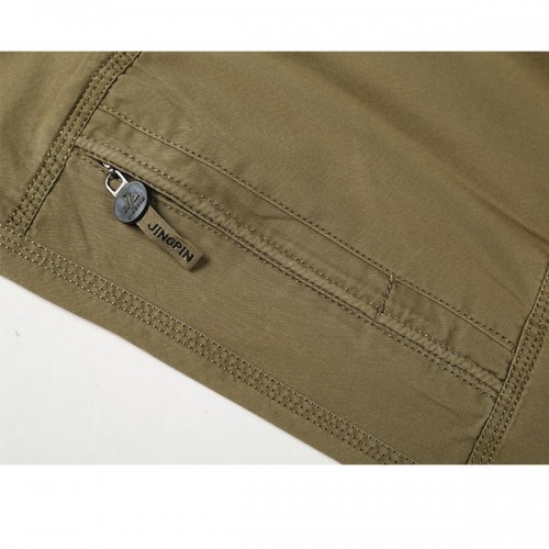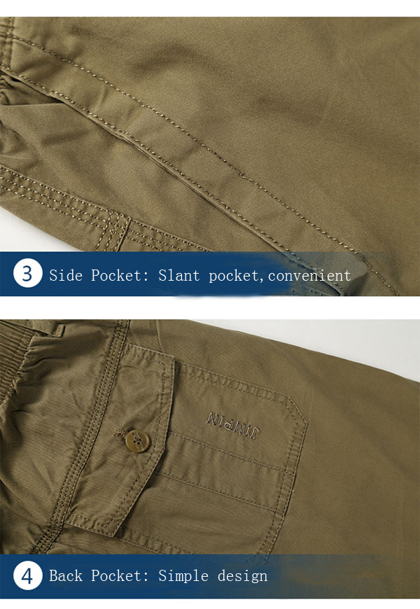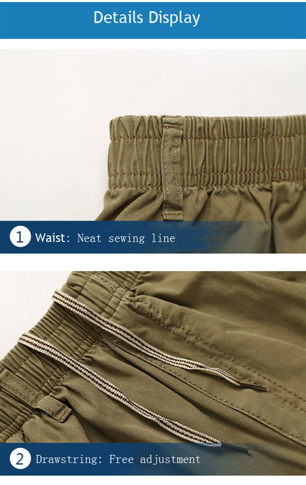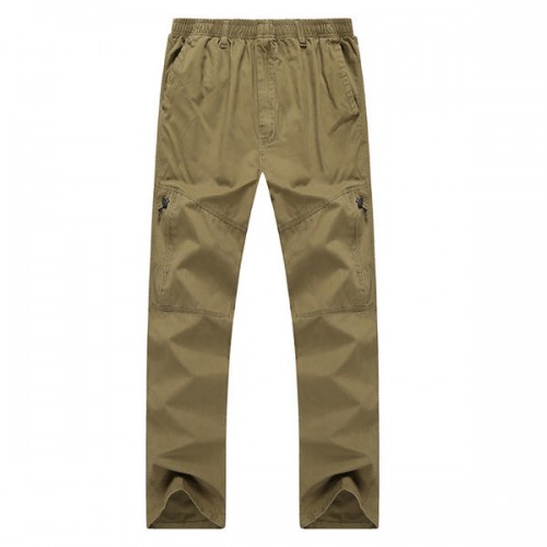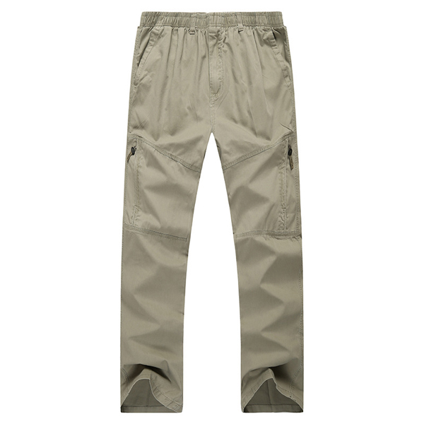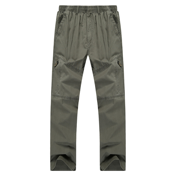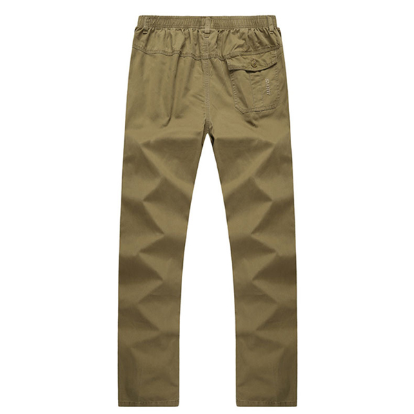 Mens Casual Straight Leg Loose Trousers Solid Color Elastic Waist Multi Pocket-pants