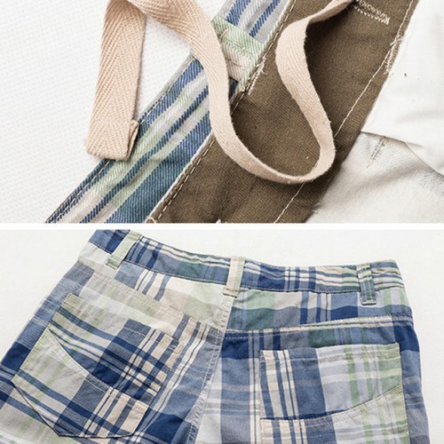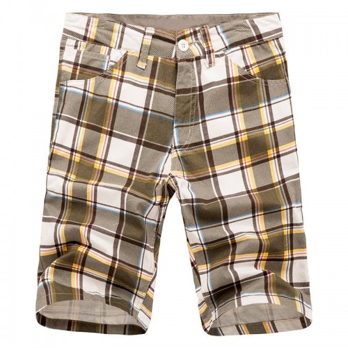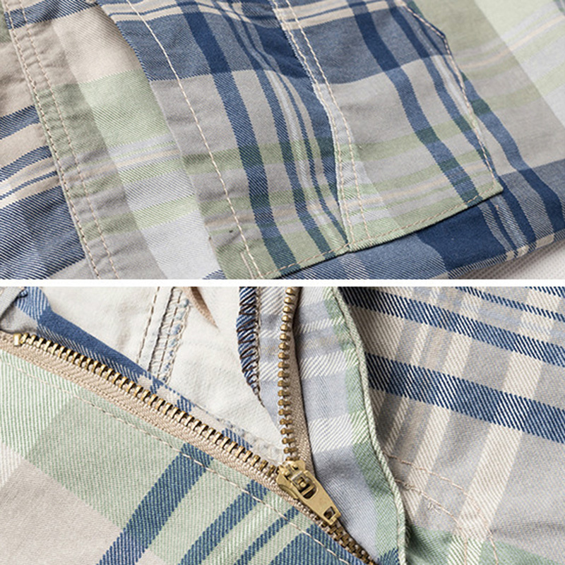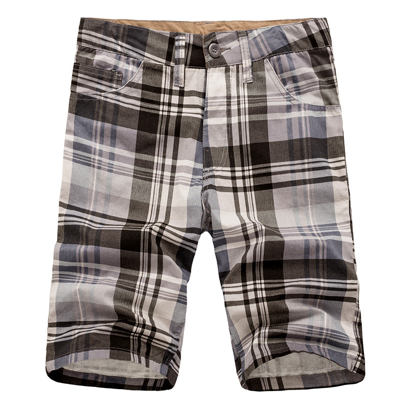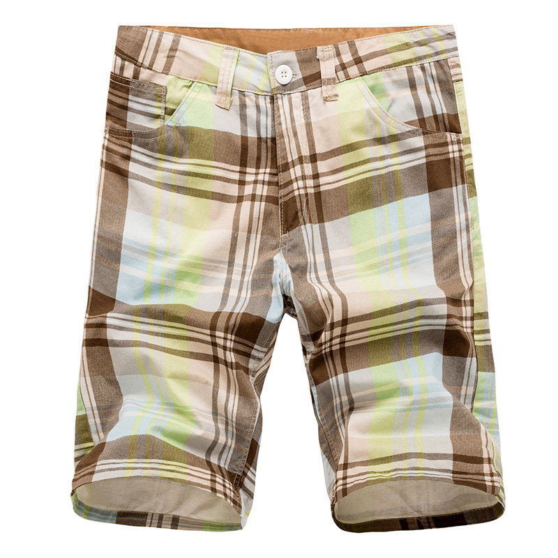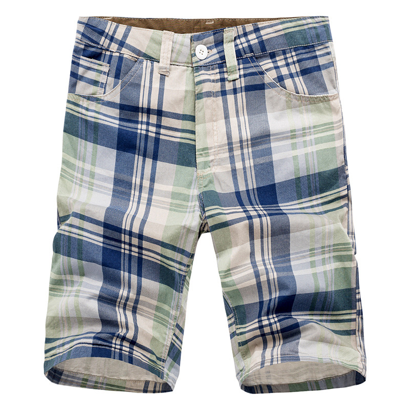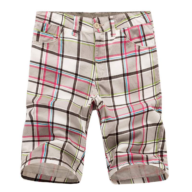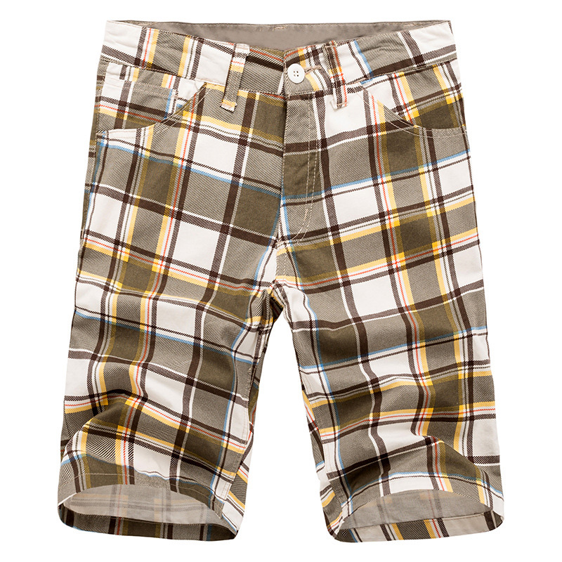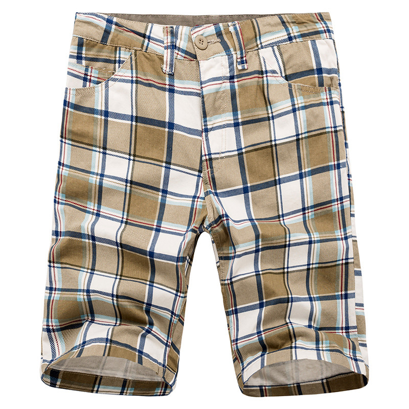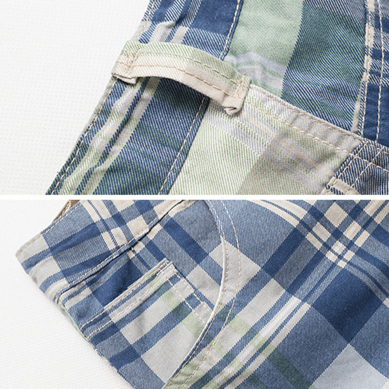 Men's Casual Lattice Knee-Length Cotton Shorts Summer Breathable Shorts Pants