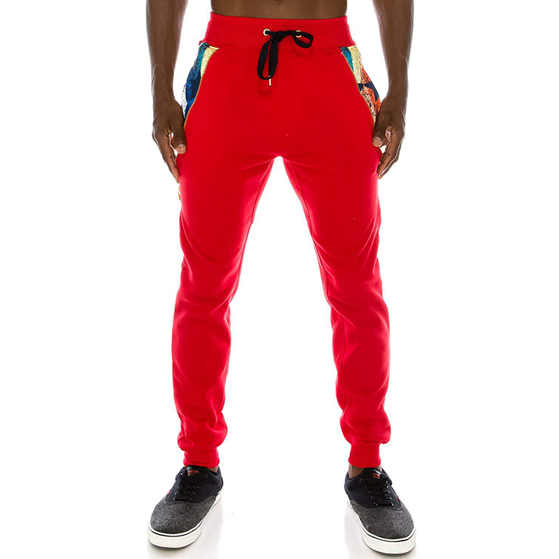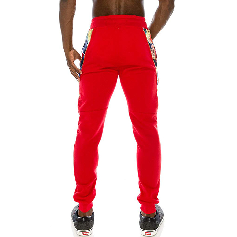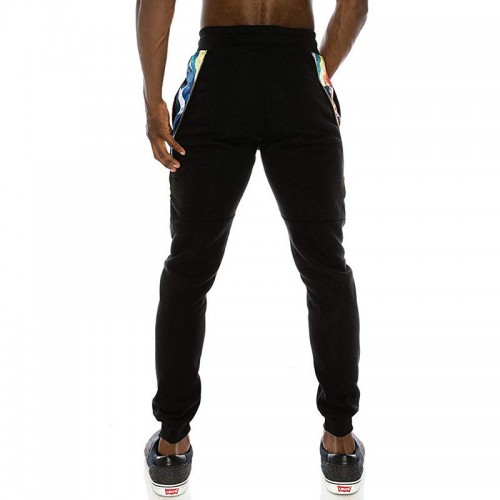Mens 3D Priting Elastic Waist Drawstring Jogging Pants Side Zipper Pockets Trousers