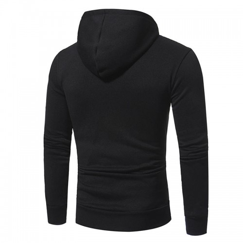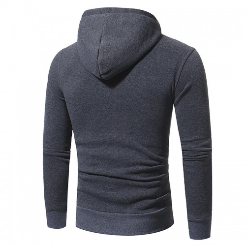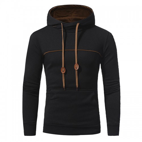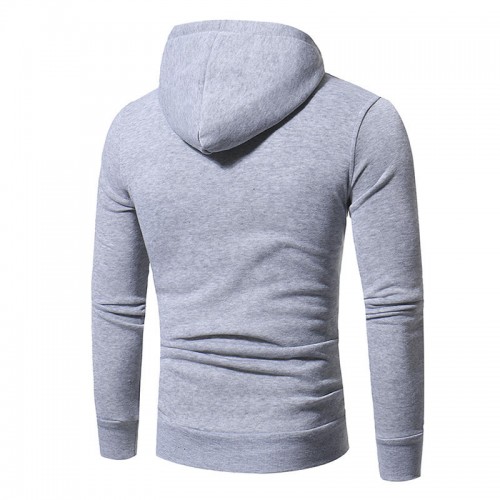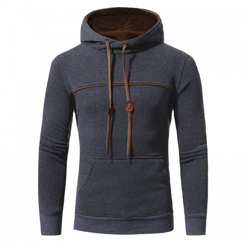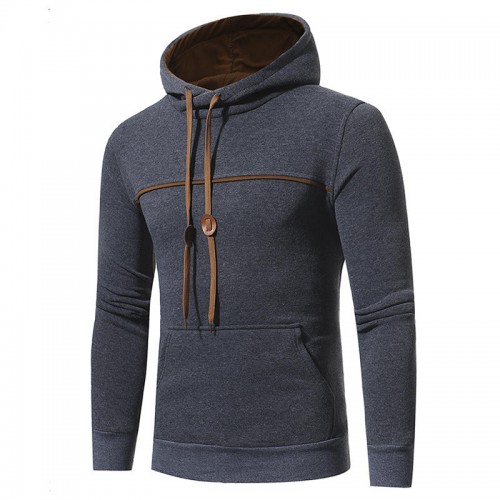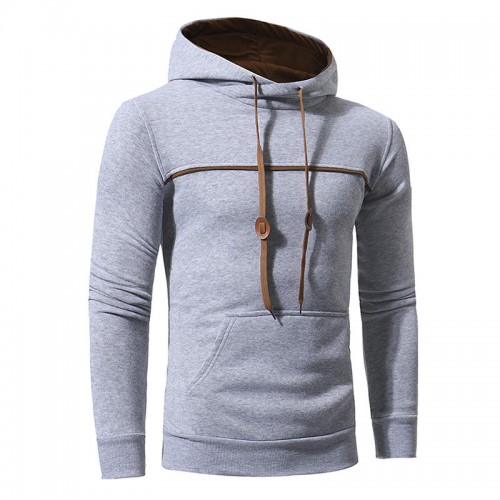 Mens Fashion Drawstring Hooded Pure Color Long Sleeve Casual Sweatshirt