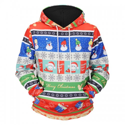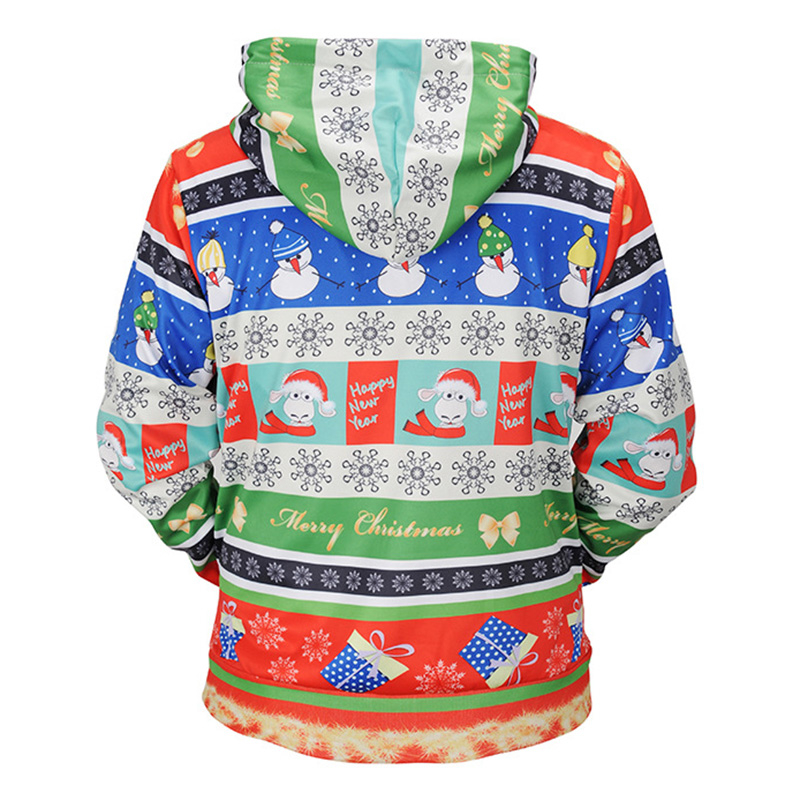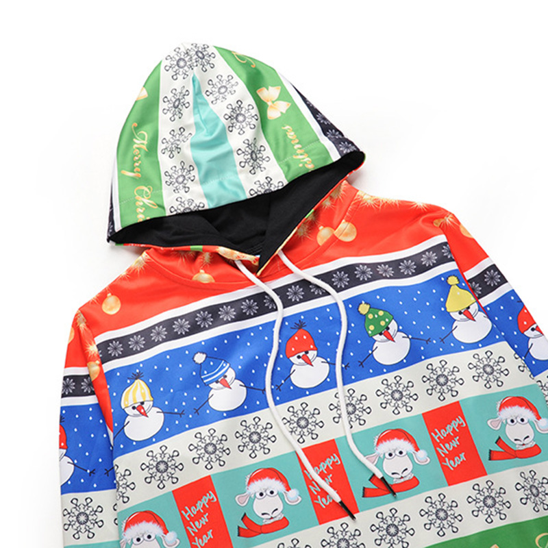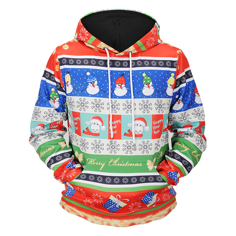 Mens Fashion Christmas Long Sleeve Hooded Cartoon Printing Casual Sweatshirt