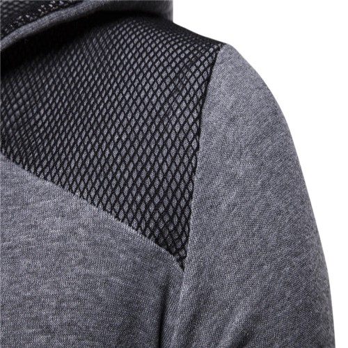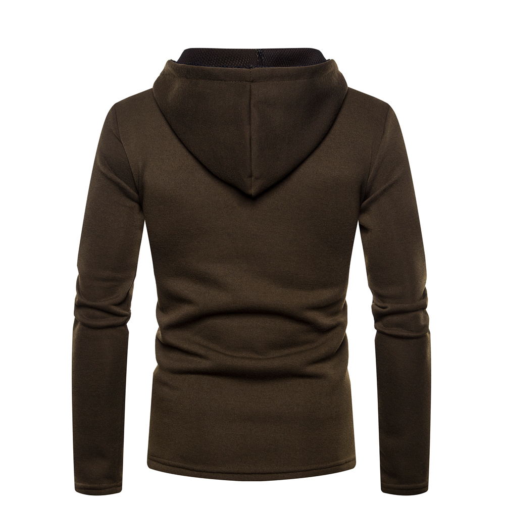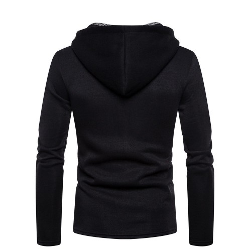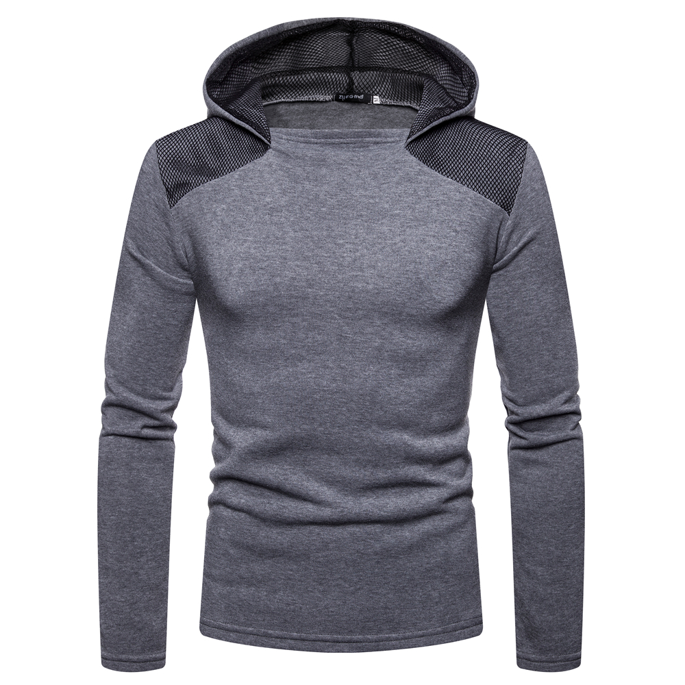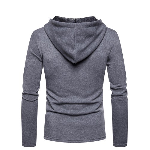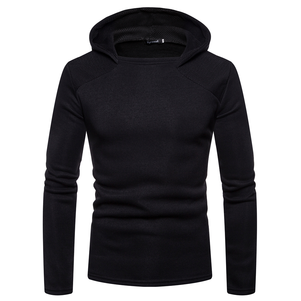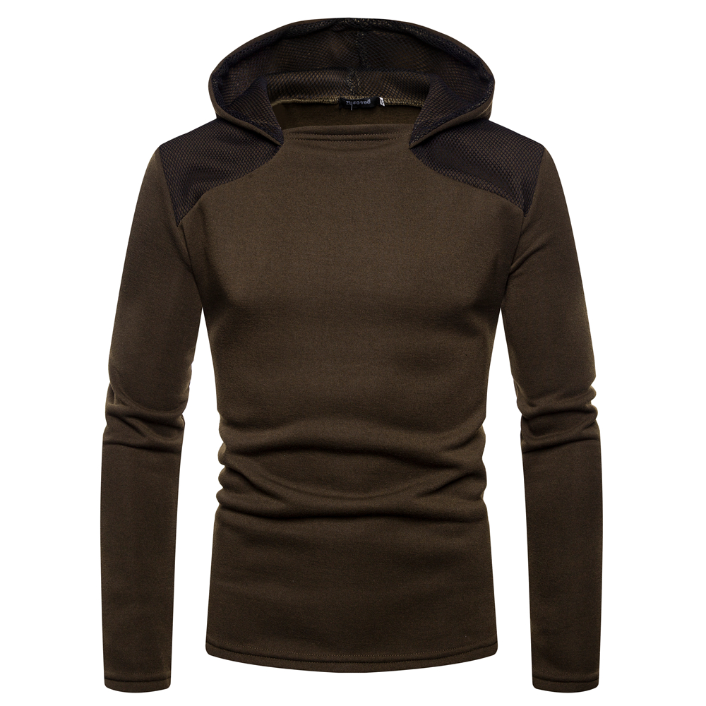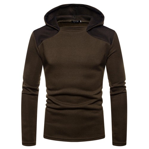Men's Fashion Cotton Pure Color Hooded Stitching Sleeves Casual Sweatshirt