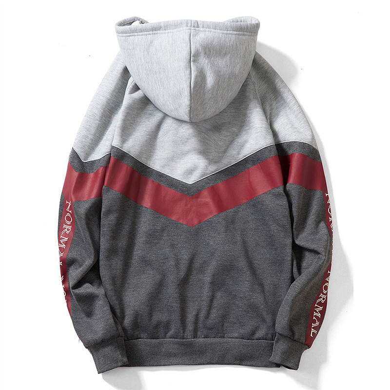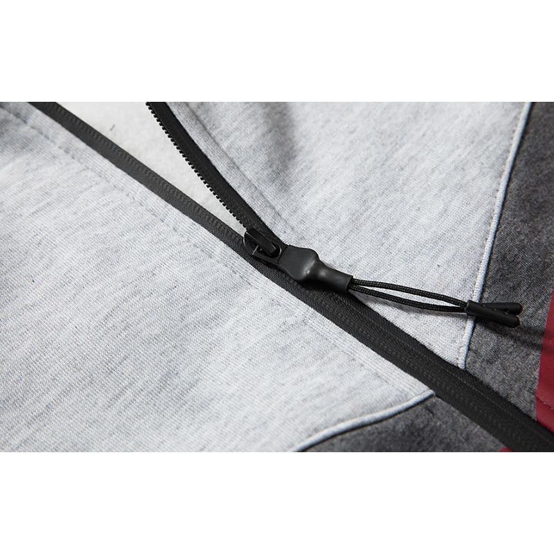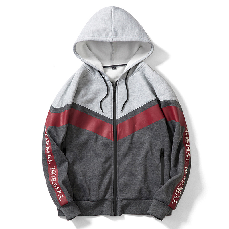 Men's Autumn Polyester Loose Hoodies Zipper Fashion Patchwork Casual Sweatshirt