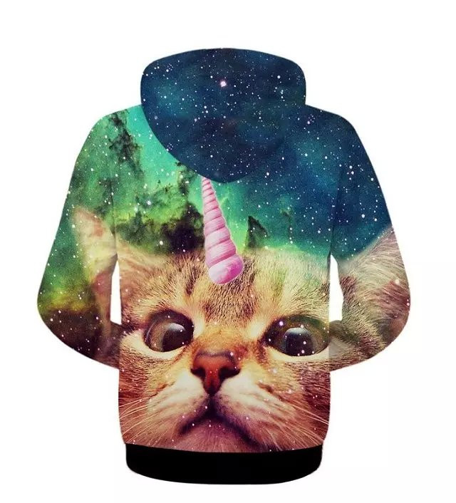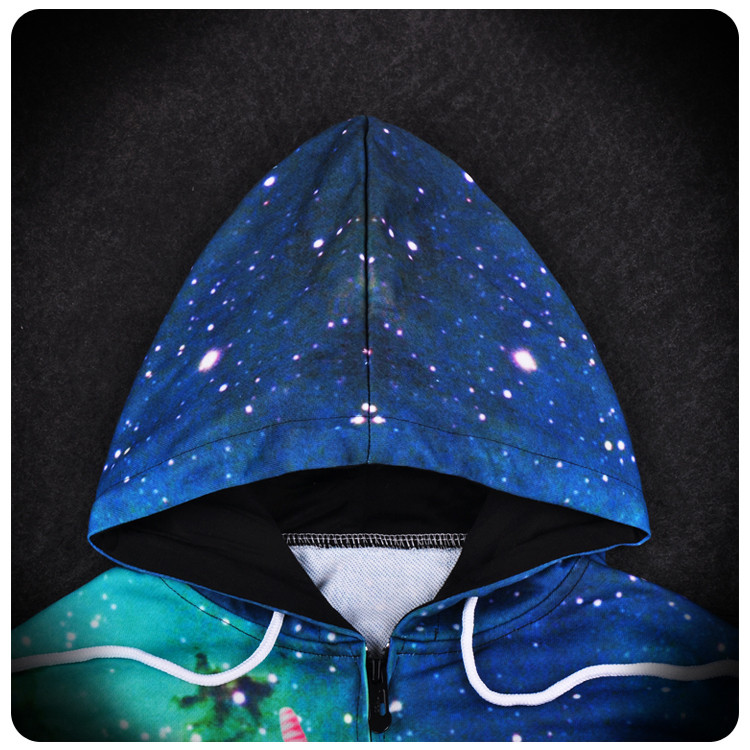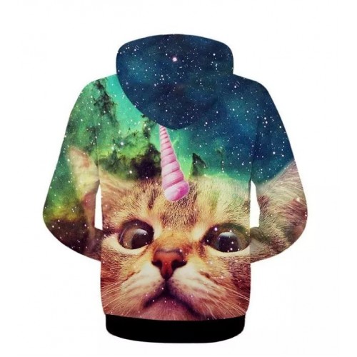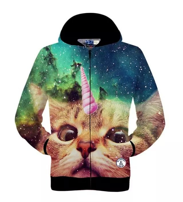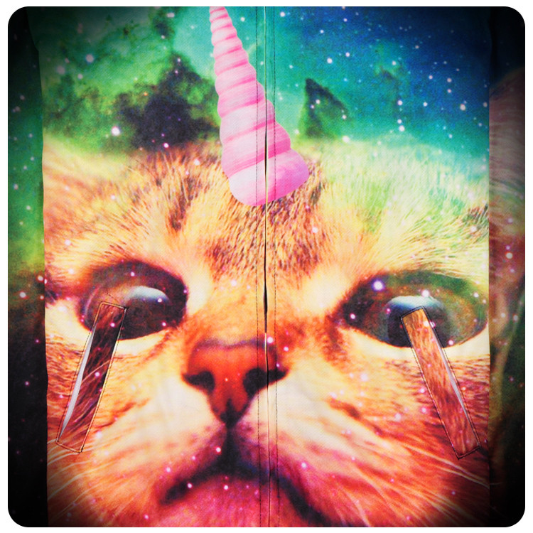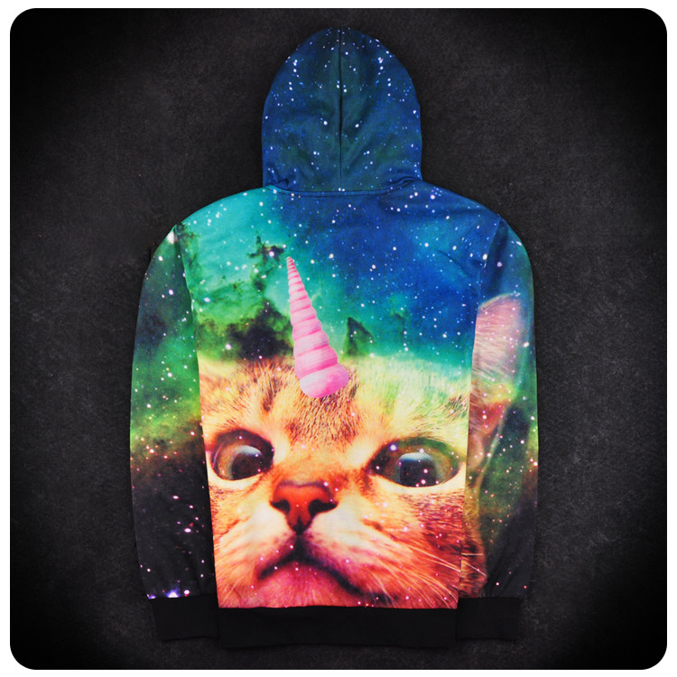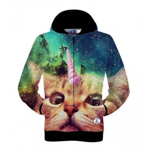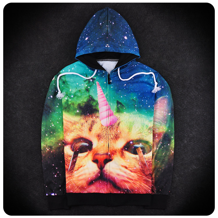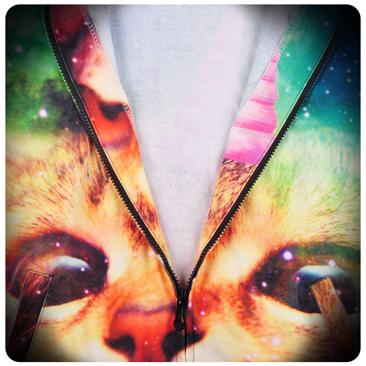 Men Sping Fall Dacron 3D Cartoon Cat Printing Zipper Hoodies Coat Sweatshirt
