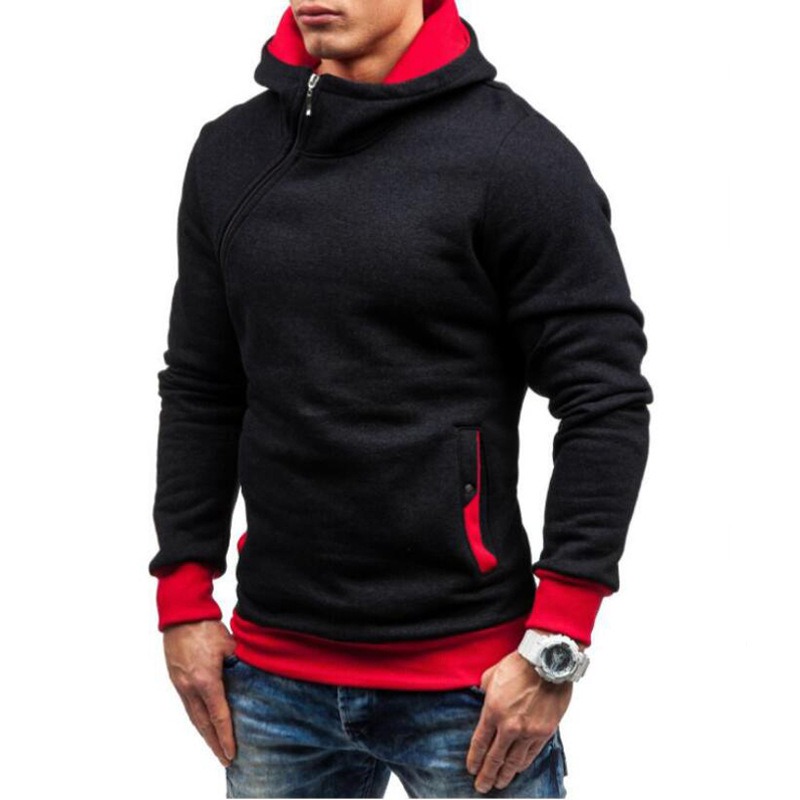 Men Zipper Dual Pockets Hooded Sweatshirt