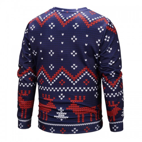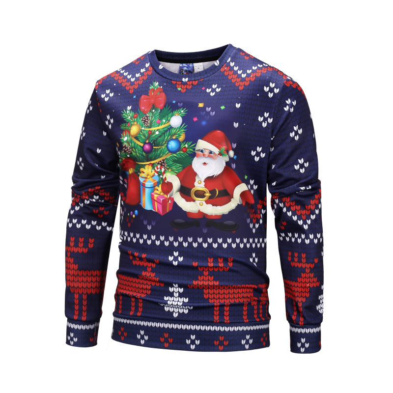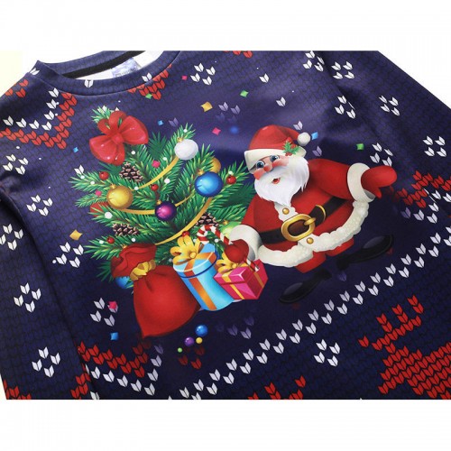 Mens Santa Claus Printing Fashion Crew Neck Long Sleeve Overhead Casual Sweatshirt