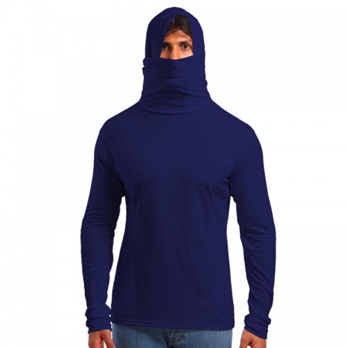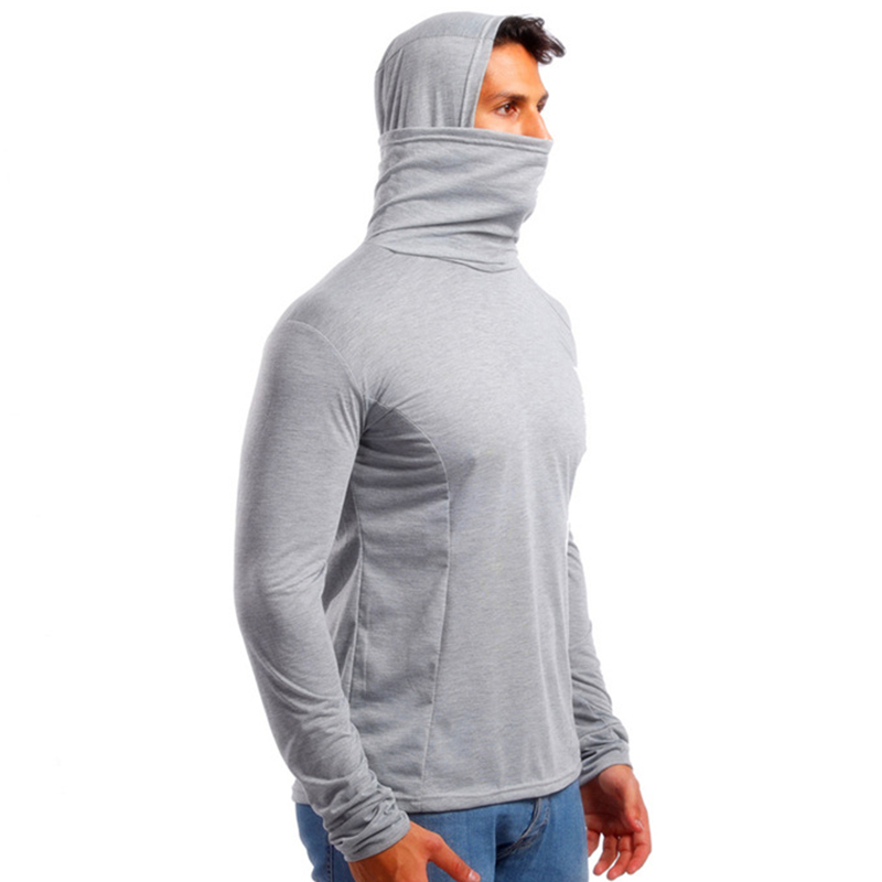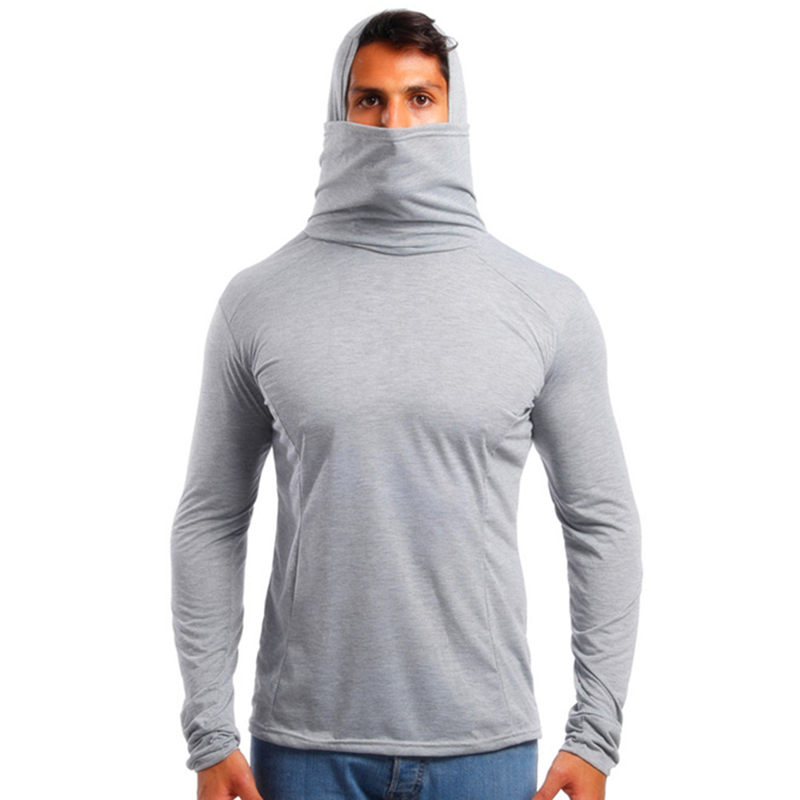 Men's Fashion Slim Fit High Collar Pure Color Mask Long Sleeve Casual Hooded Sweatshirt