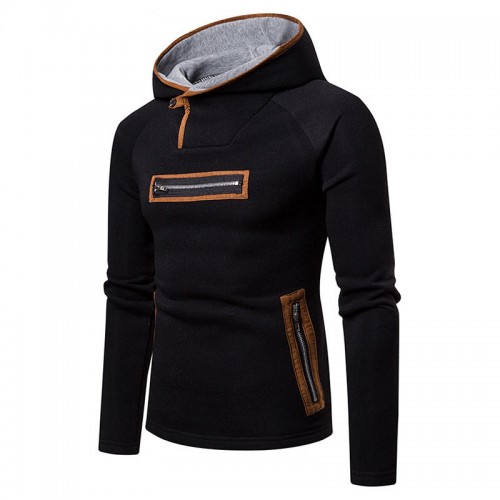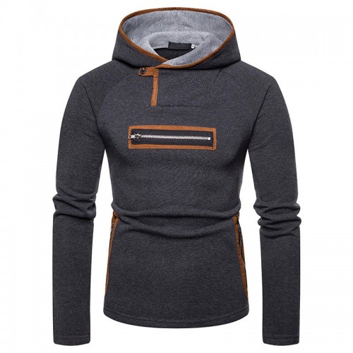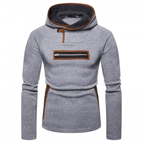 Men's Fashion Unique Zipper Decoration Loose Casual Overhead Long Sleeve Hooded Sweatshirt