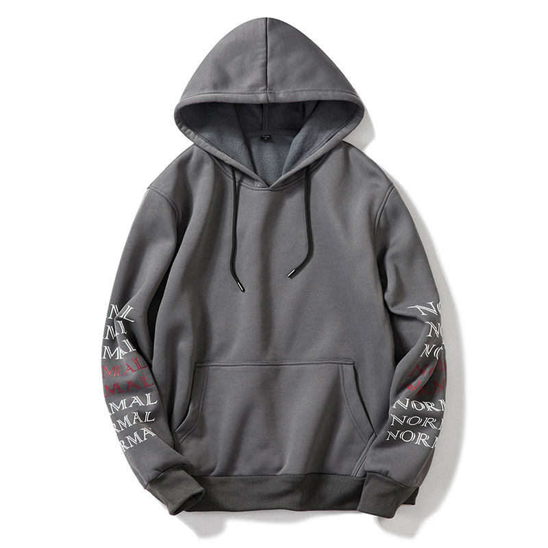 Men's Polyester Letter Thickened Drawstring Overhead Sports Hoodies Sweatshirt
