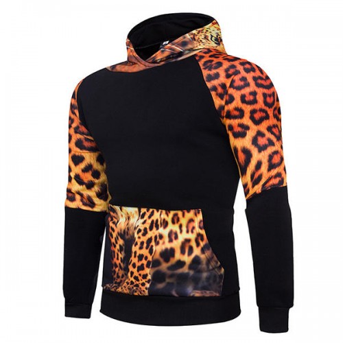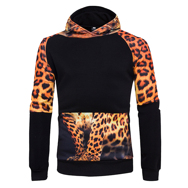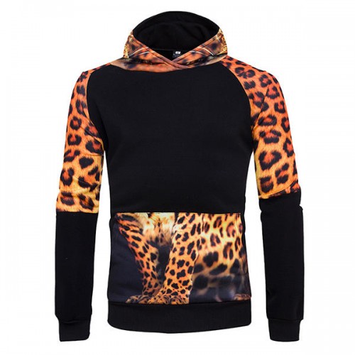 Hem head Side 3D Printing Sweater Fashion Casual Leopard Hoodies