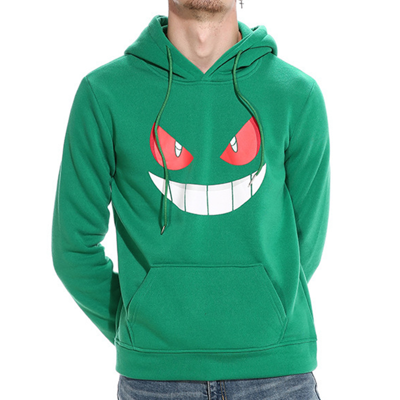 Men's Casual Drawstring Halloween Pumpkin Smile Pattern Long Sleeve Hooded Sweatshirt