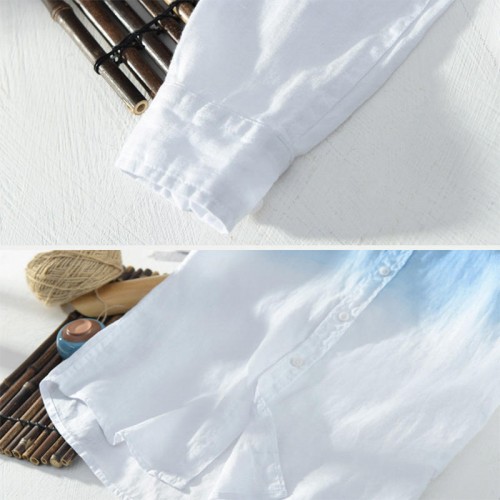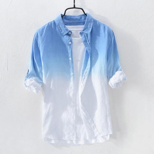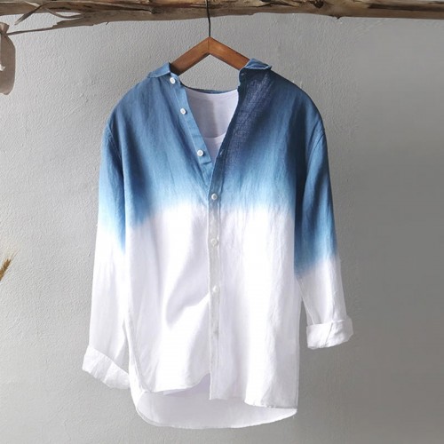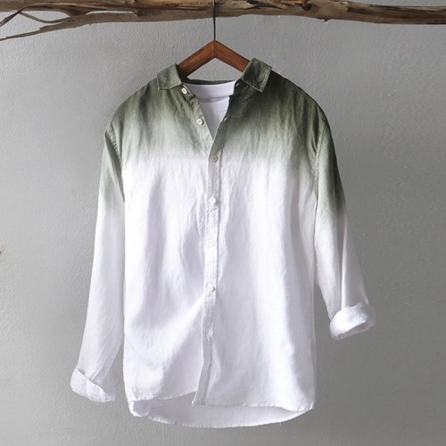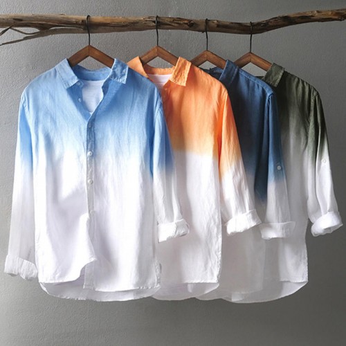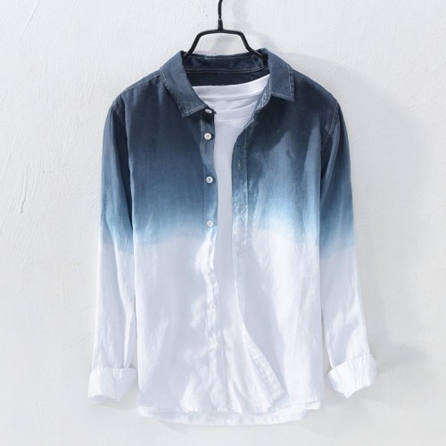 Mens Gradient Color Long Sleeve Cotton Breathable Trendy Casual Shirts