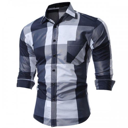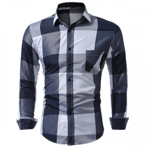 Mens Plaid Printing Slim Checked Button Up Fashion Designer Casual Shirt