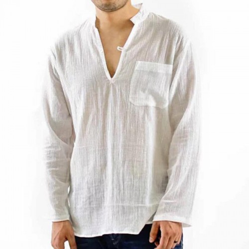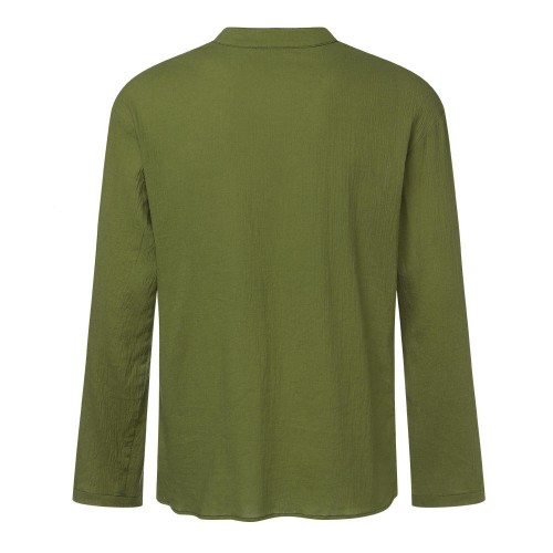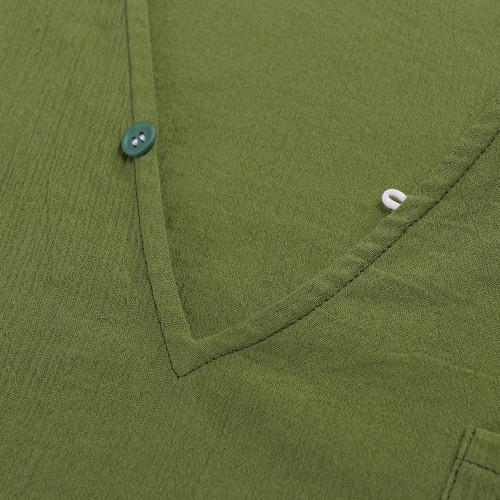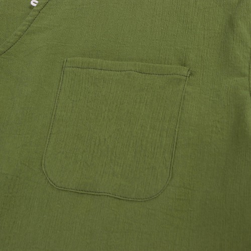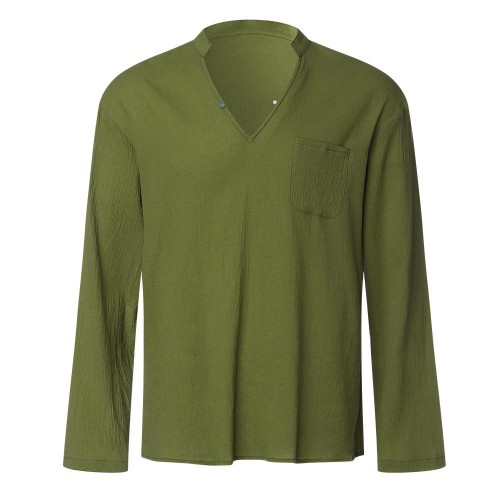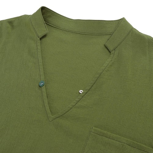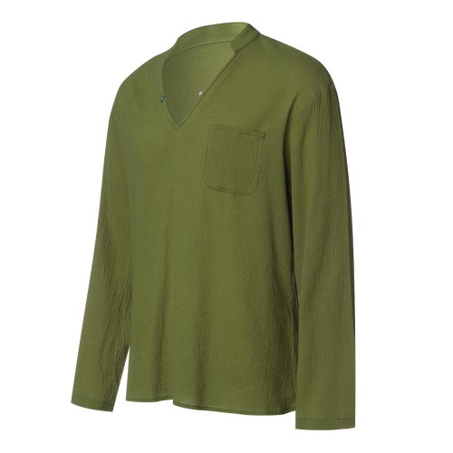 Mens Vintage Breathable Thin V-neck Solid Color Loose Casual Shirts with Chest Pocket