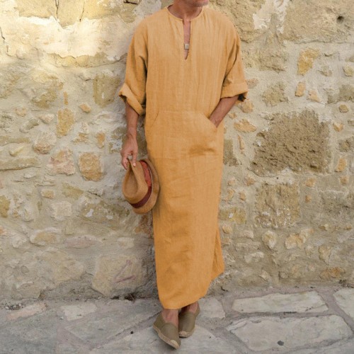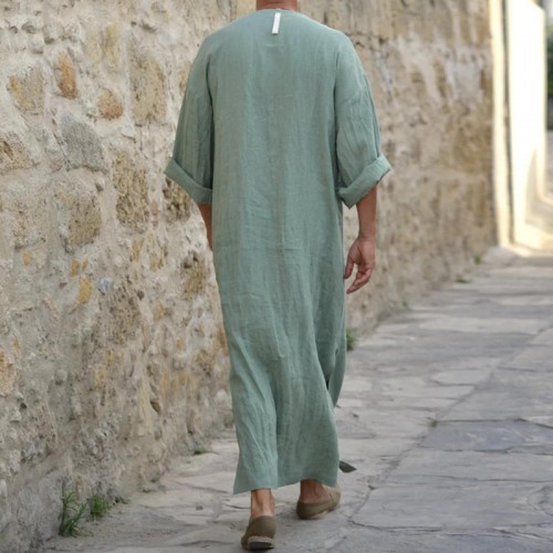 Attention: Please note that you should place your order in US size, however the tags inside the items will show in Asian size. Description: Brand Name: TWO-SIDED Pattern Type: Solid Color Item Type: Shirts Fit Type: Loose Gender: Men Thickness: Regular Style: Vintage, Casual, Ethnic Style Season: Summer Collar: V-neck Weight: 0.4kg Material: 100% Cotton Color: Blue, Orange, Light Green, Off-white Sleeve Length: Long Sleeve Occasion: Leisure
