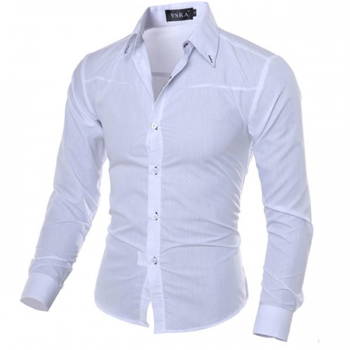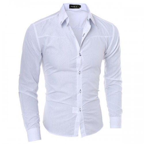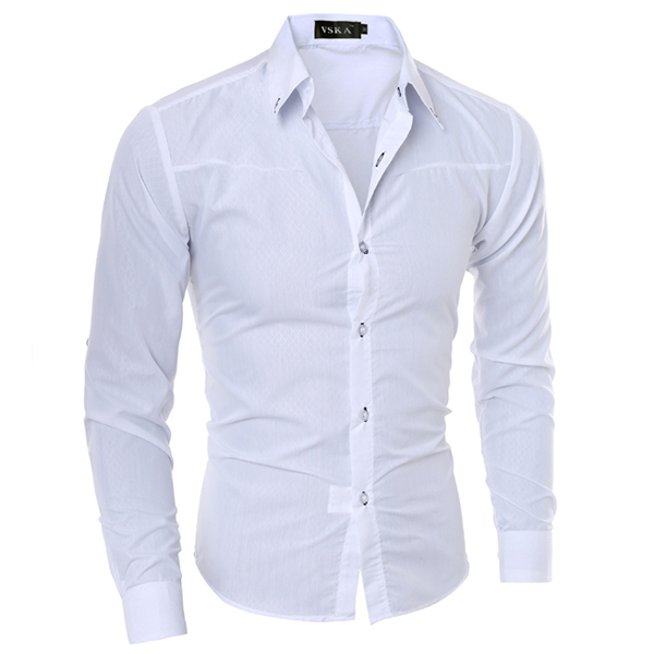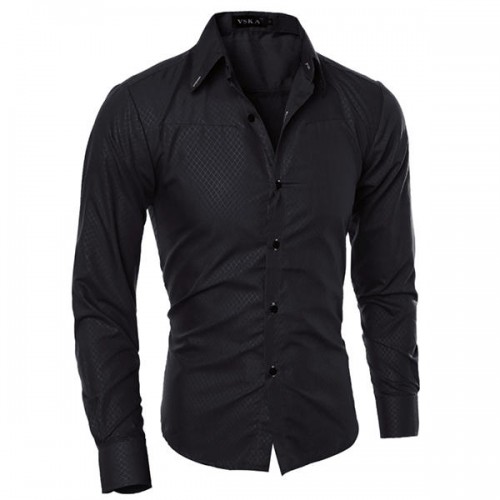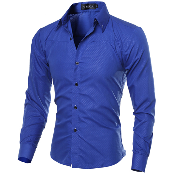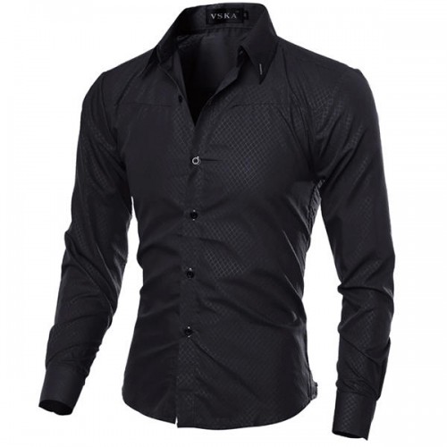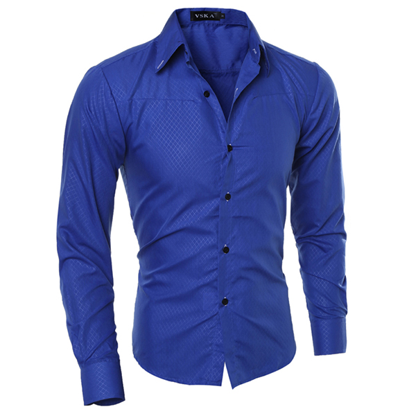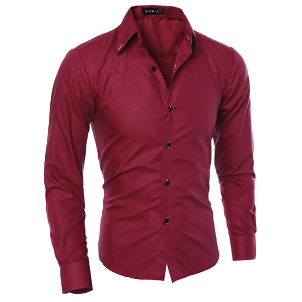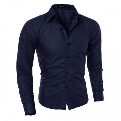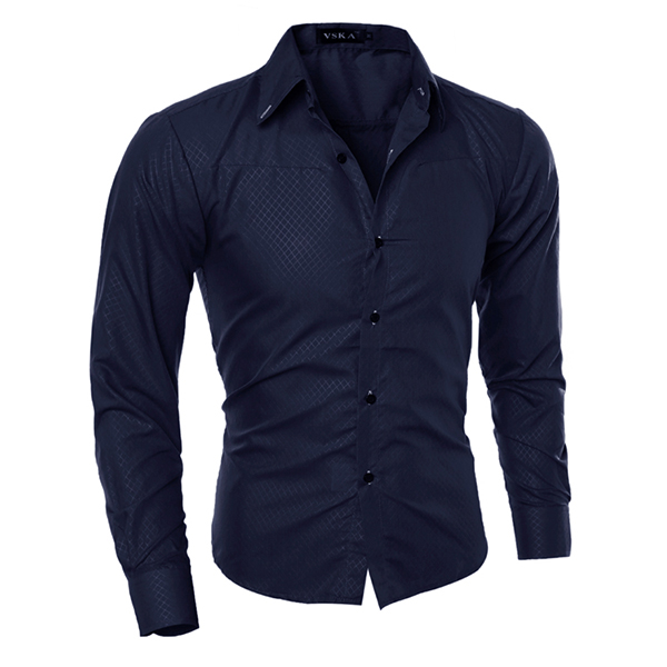 Mens Slim fit Pure Color S-3XL Long-sleeved Gingham Shirts