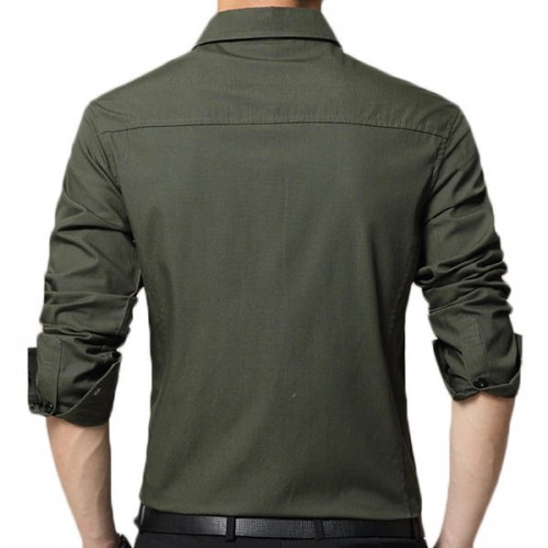 Mens Winter Thick Military Slim Cotton Button Decoration Velvet Warm Casual Shirt