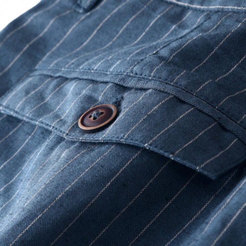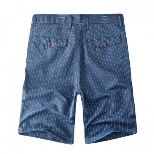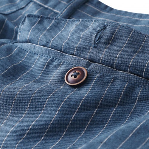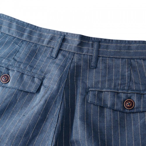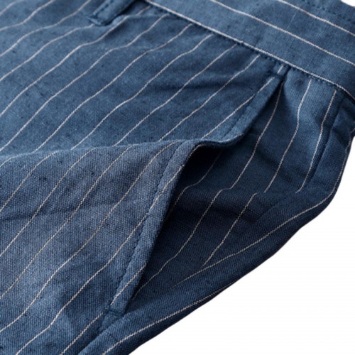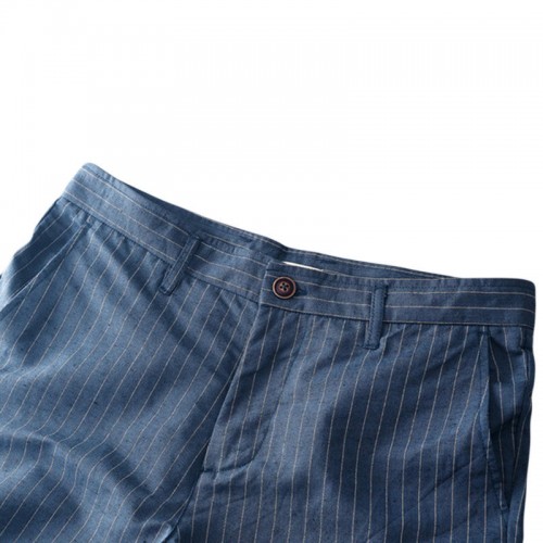 Men's Casual Stripe Linen Cotton Shorts Summer Breathable Slim Shorts Pants