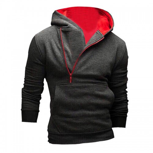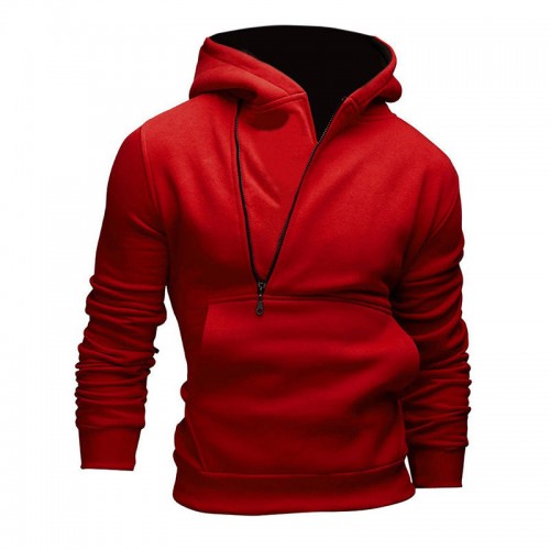 Mens Fashion Half Zipper Long Sleeve Hooded Casual Sweatshirt