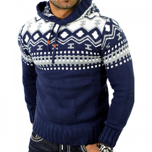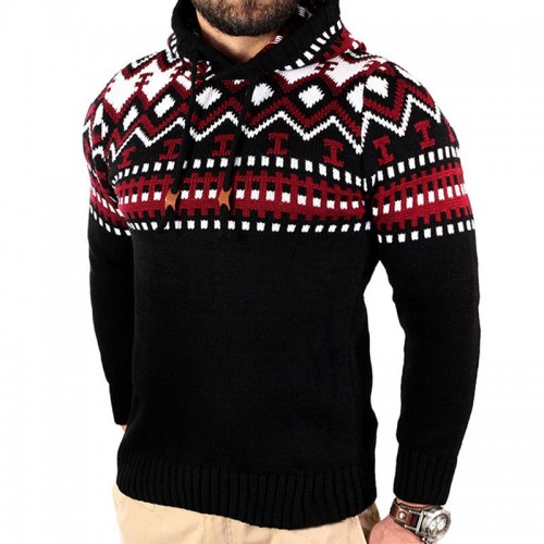 Mens Printing Christmas Sweaters Hoodies Patchwork Slim Fit Long Sleeve Casual Sweatshirts
