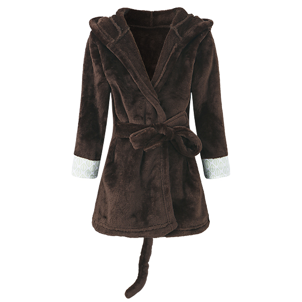 Kids Cartoon Pattern Bathrobe Long Sleeve Hooded Wrap Robe