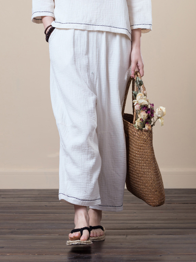 Loose Solid Harem Pants Elastic Waist Long Trousers