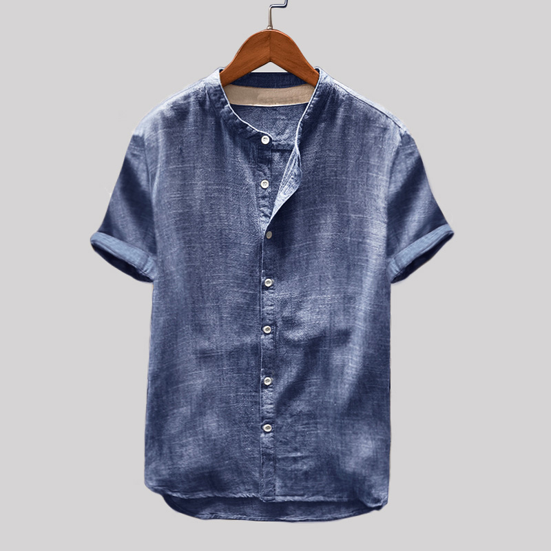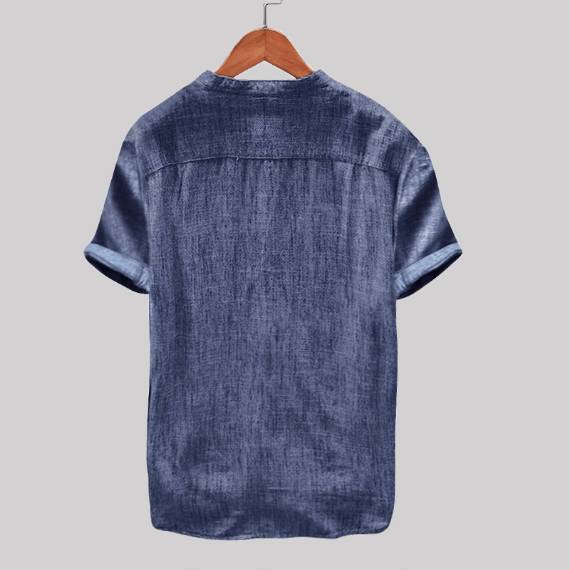Mens Vintage Solid Color Single-breasted Stand Collar Short Sleeve Loose Casual Shirts