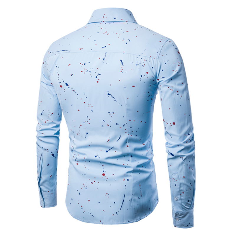 Mens Fashion Printing Design Turn Down Collar Long Sleeve Casual Shirts