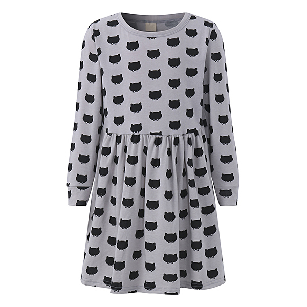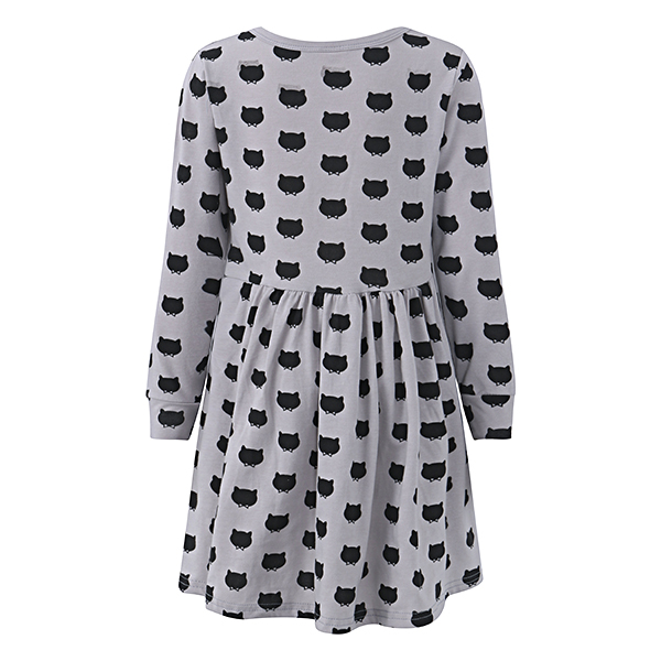 Kid Girls Black Cats Printed Long Sleeve Dress